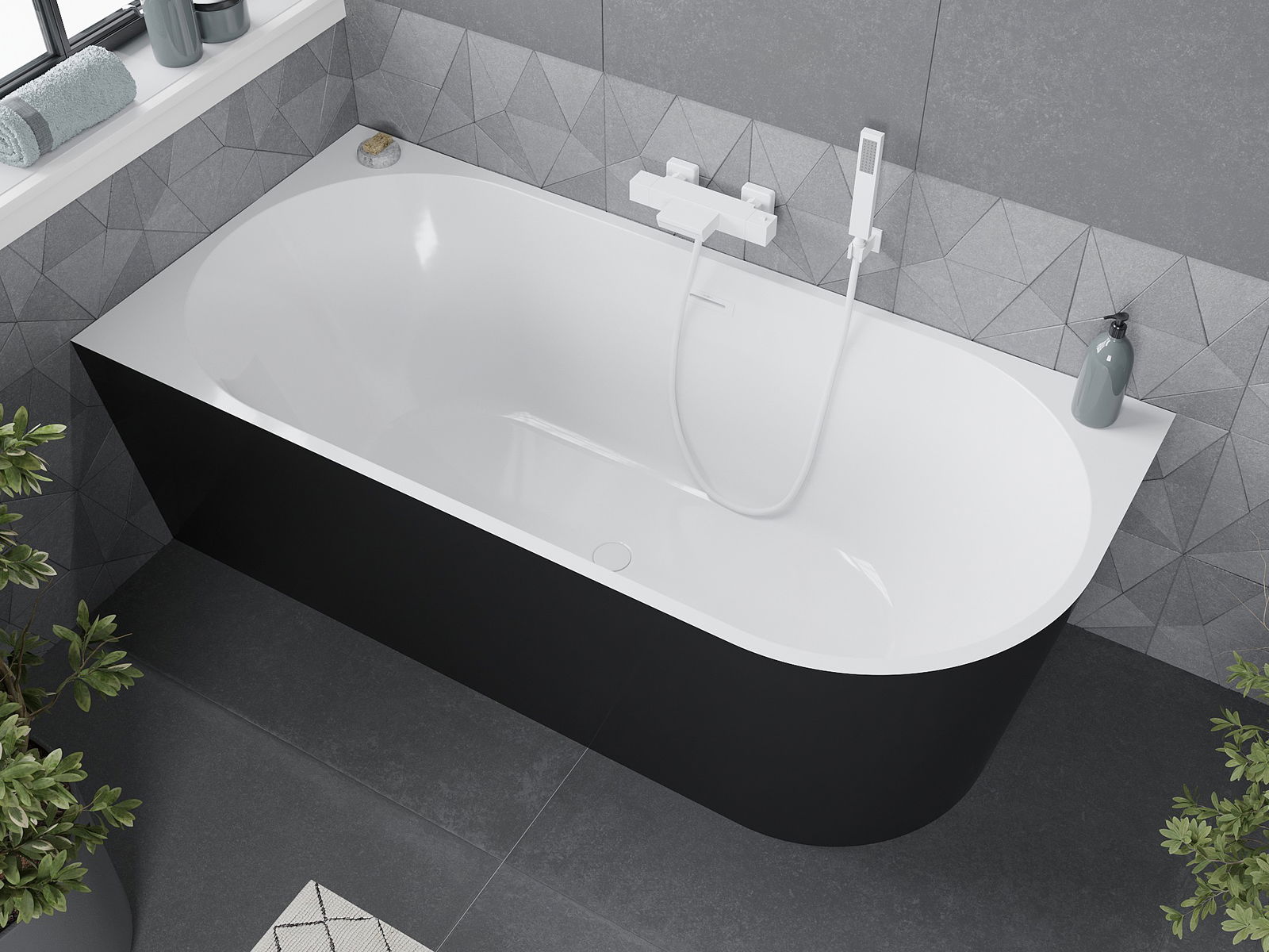 Mexen Mia szabadon álló sarokkád bal oldali 160 x 75 cm, fehér/fekete, fehér túlfolyó - 52691607575L-20