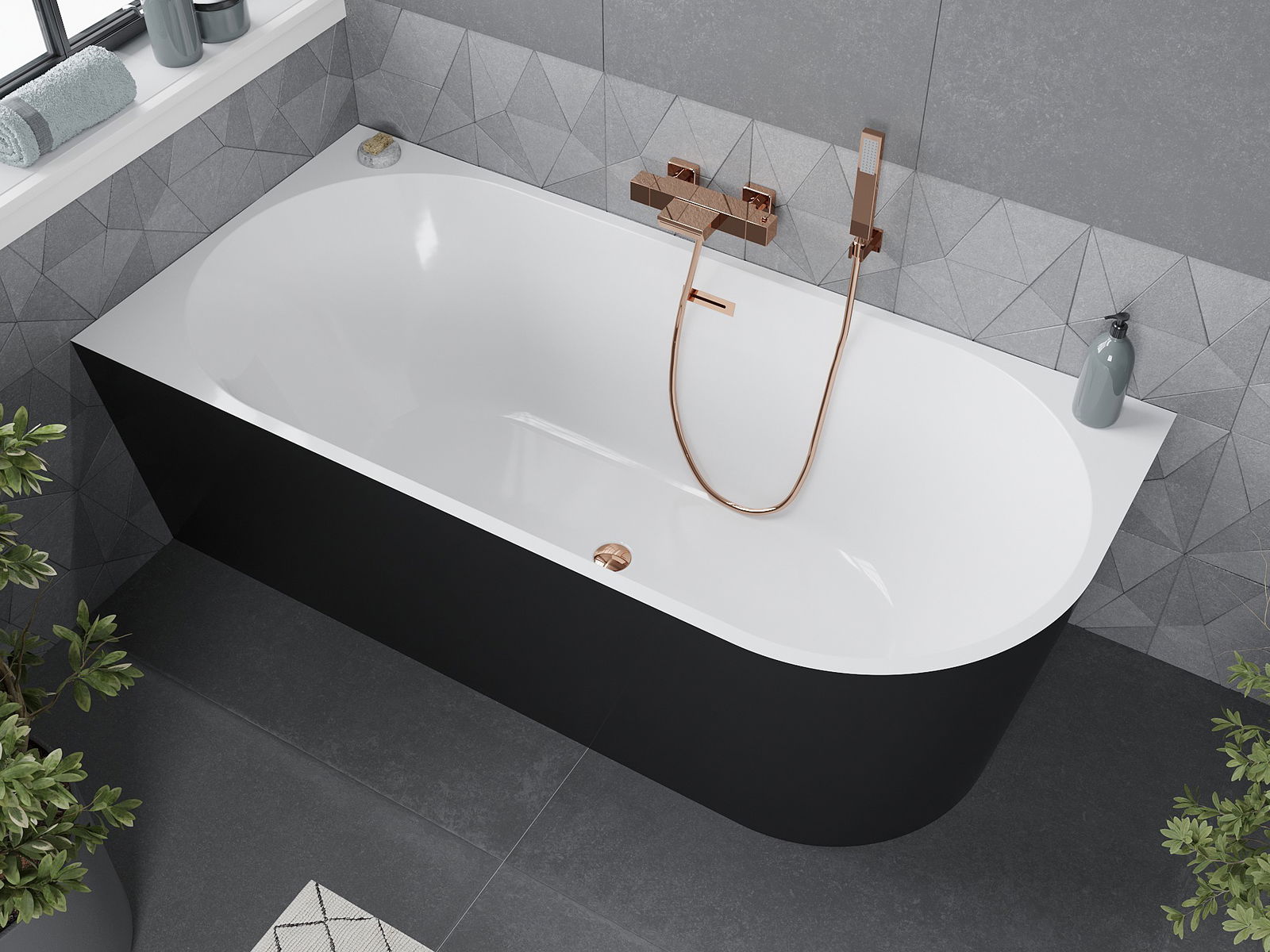 A Mexen Mia egy elegáns sarokszabadon álló kád 160 x 75 cm-es méretben, amely stílusos fehér és fekete kombinációban érhető el. Szociális akrilból készült, amely ellenáll a karcolásnak és az UV sugárzásnak. A rózsaarany kivitel különleges eleganciát kölcsönöz neki. A kád rendelkezik túlfolyónyílással és csaptelep nyílással, a szifon és a klik-klak dugó a csomag része. Tökéletesen illeszkedik modern fürdőszobákhoz, egyesítve a kényelmet az esztétikával.
