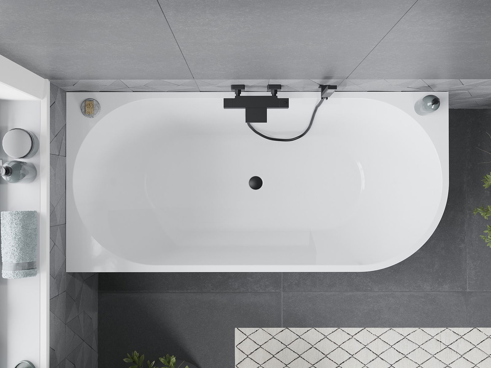 Mexen Mia szabadon álló sarokkád bal 160 x 75 cm, fehér/fekete, fekete túlfolyó - 52691607575L-70