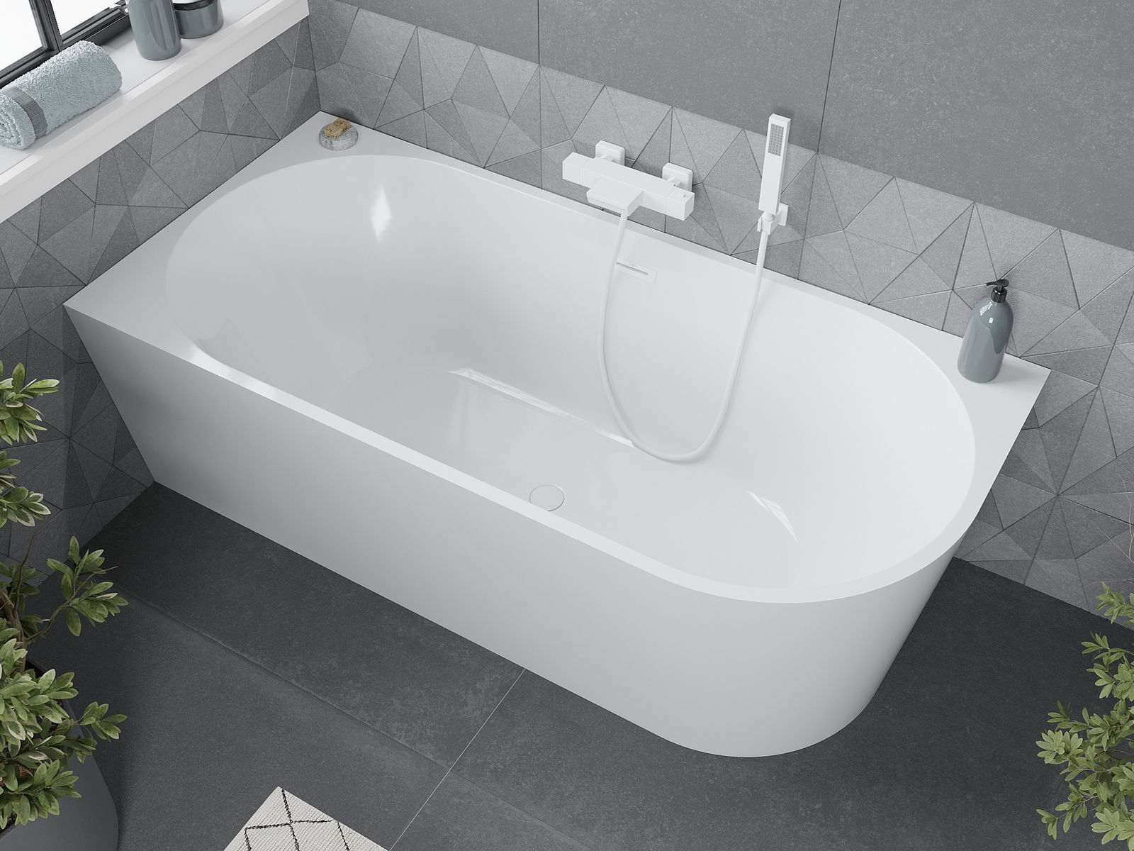 Mexen Mia szabadon álló sarokkád bal oldali 170 x 80 cm, fehér, túlfolyó fehér - 52691708000L-20