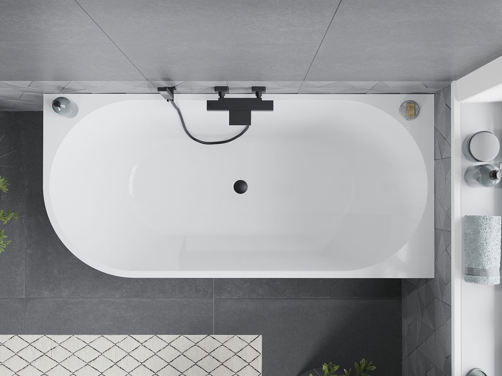 Mexen Mia szabadon álló, sarokban elhelyezkedő, jobboldali kád 180 x 80 cm, fehér, fekete túlfolyó - 52691808000P-70