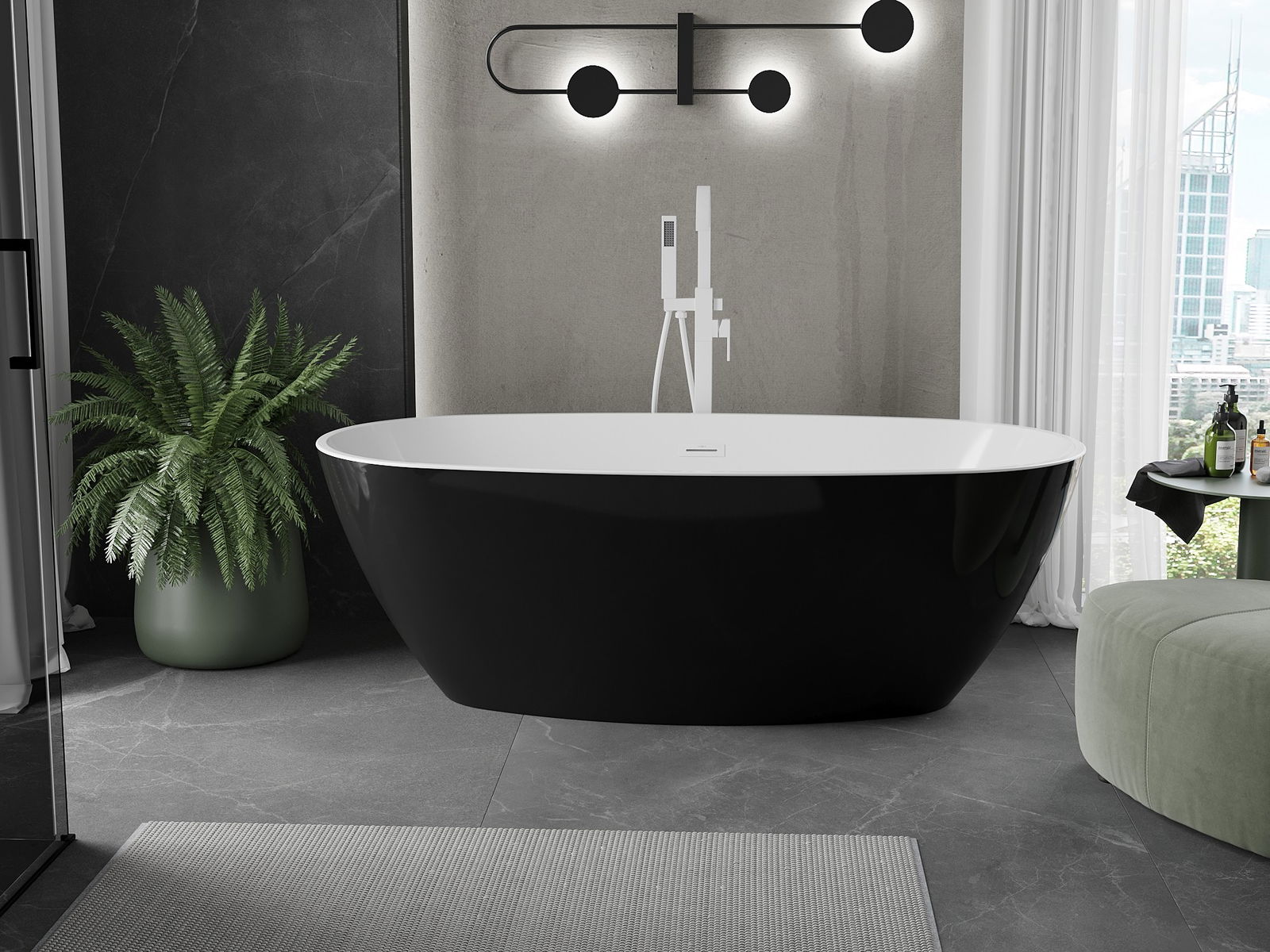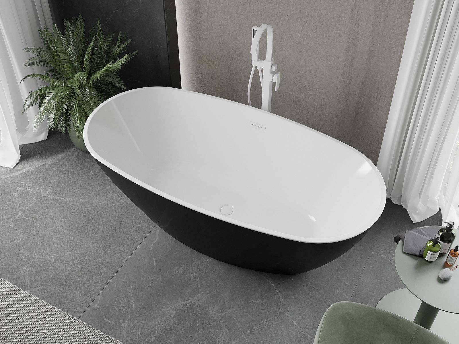 Mexen Eris szabadon álló kád 155 x 80 cm, fehér/fekete, fehér túlfolyóval - 53441558075-20