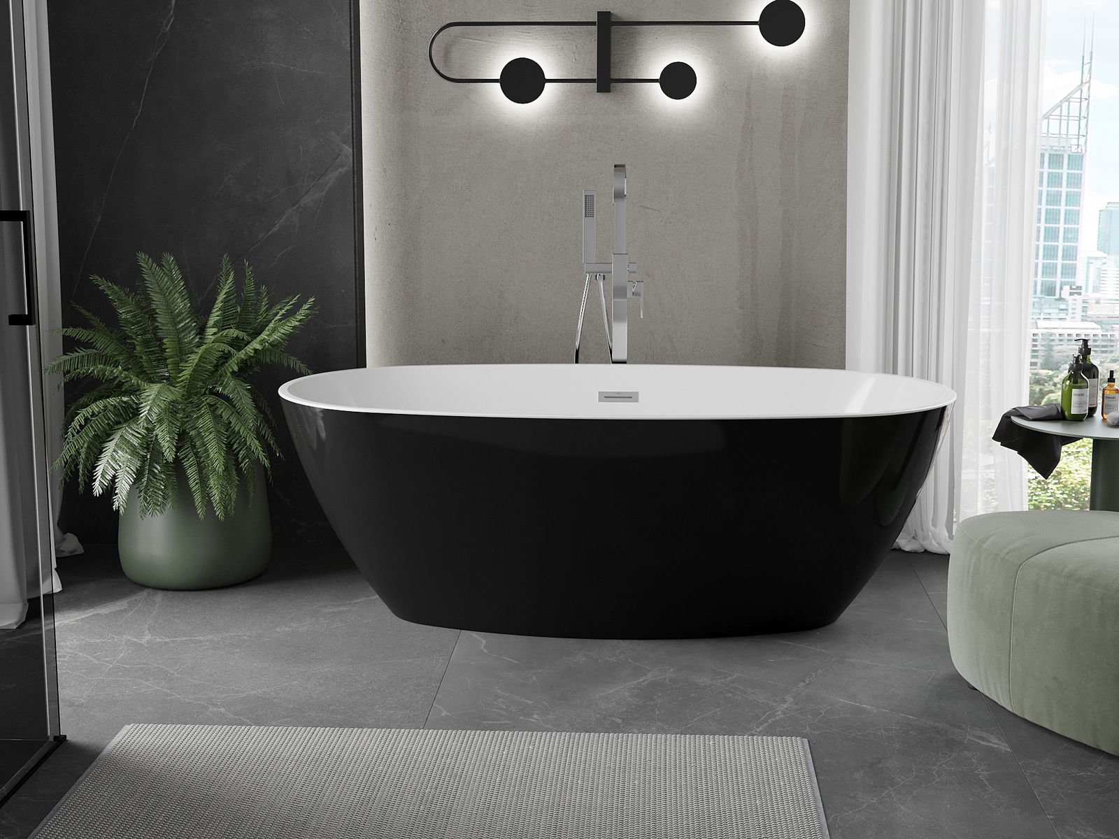 A Mexen Eris egy modern, szabadon álló kád 170 x 80 cm-es méretben, tartós szaniter akrilból, elegáns fehér-fekete színben. Az ovális forma és a magas minőségű fényes kivitel stílust kölcsönöz minden fürdőszobának. Középső lefolyóval és túlfolyó nyílással rendelkezik, ami kényelmes használatot biztosít. A készlet tartalmaz szifont és klik-klak dugót. A kád jellemzője a mattolás- és UV-állóság, ami hosszú távú, attraktív megjelenést garantál.