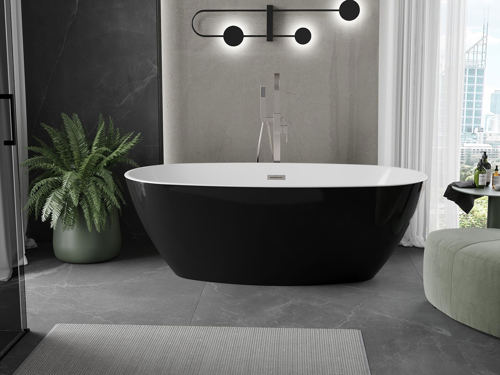 Mexen Eris szabadon álló kád 170 x 80 cm, fehér/fekete, matt nikkel túlfolyóval - 53441708075-97