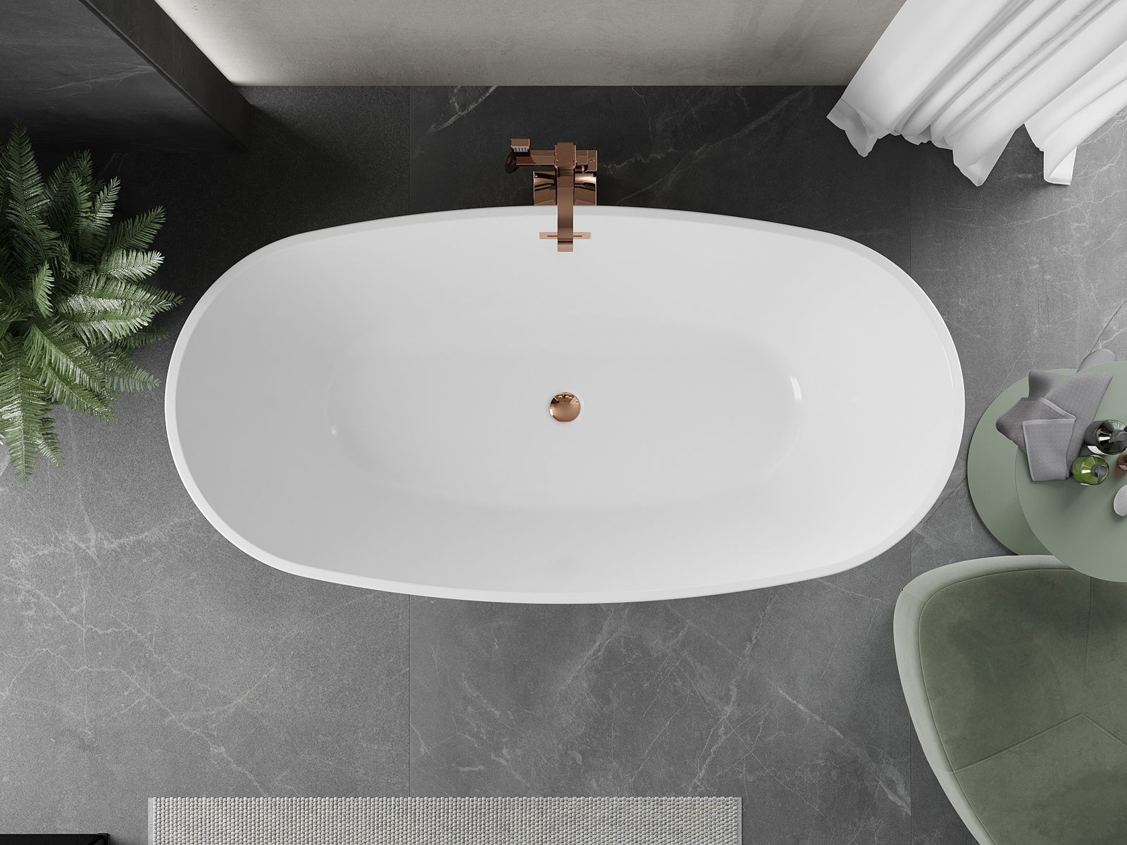 A 180 x 80 cm-es szabadon álló kád ideális megoldás az eleganciát és kényelmet kedvelők számára. Szaniiter akrilból készült, ellenáll a mattulásnak és az UV sugárzásnak, ami tartósságot és könnyű karbantartást biztosít. Ovális formája és fehér színe, rózsaarany részletekkel kiegészítve, luxus jelleget ad a belső térnek. Továbbá, a kád túlfolyó nyílással van felszerelve, és a szett tartalmaz egy praktikus szifont és kattintós dugót.