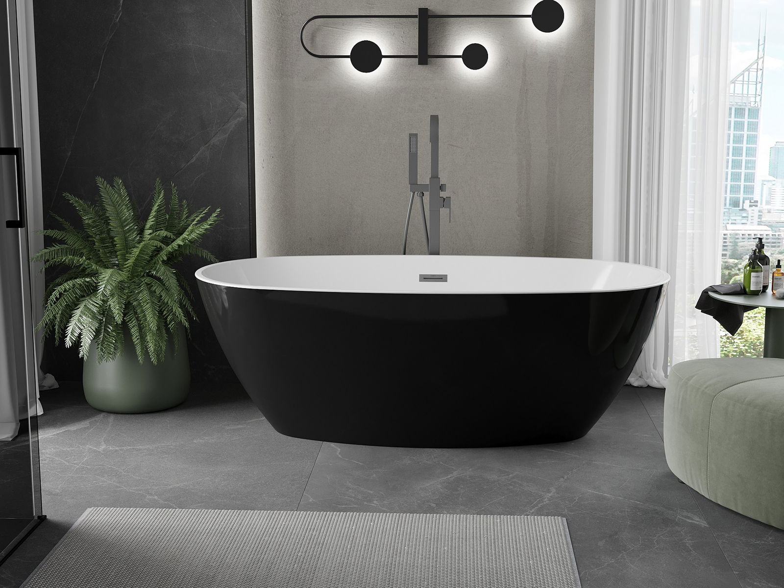 A Mexen Eris egy elegáns, 180 x 80 cm méretű szabadon álló kád, amely szanitáris akrilból készült, biztosítva a tartósságot és a könnyű tisztítást. Ovális formája és fehér színe fekete akcentusokkal modern jelleget kölcsönöz minden fürdőszobának. A gun gray kefeeltés és középül pufferált lefolyó további előnyök, amelyek növelik a funkcionalitást. A kád ellenálló a mattulással és az UV-sugárzással szemben, így hosszabb ideig megőrzi különleges kinézetét.