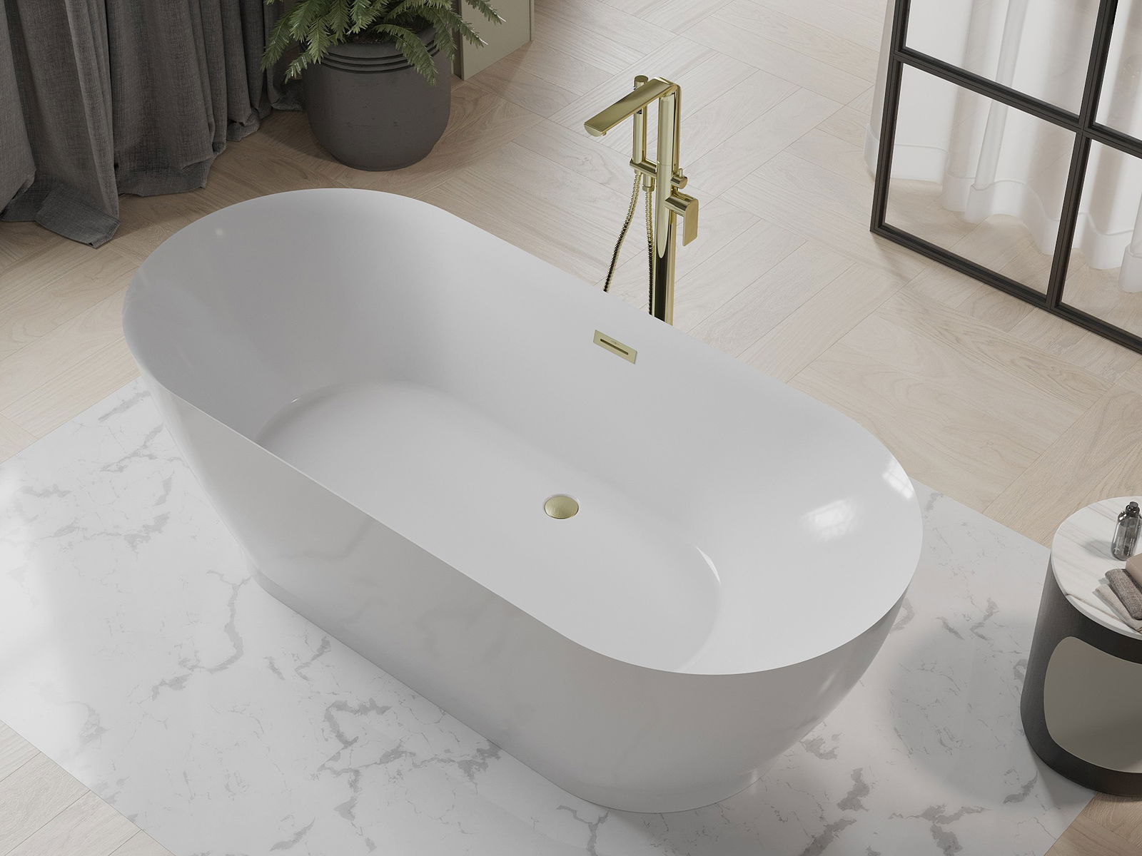Mexen Roxy szabadon álló kád 180 x 85 cm, fehér, arany kefélt túlfolyással - 51201808500-55