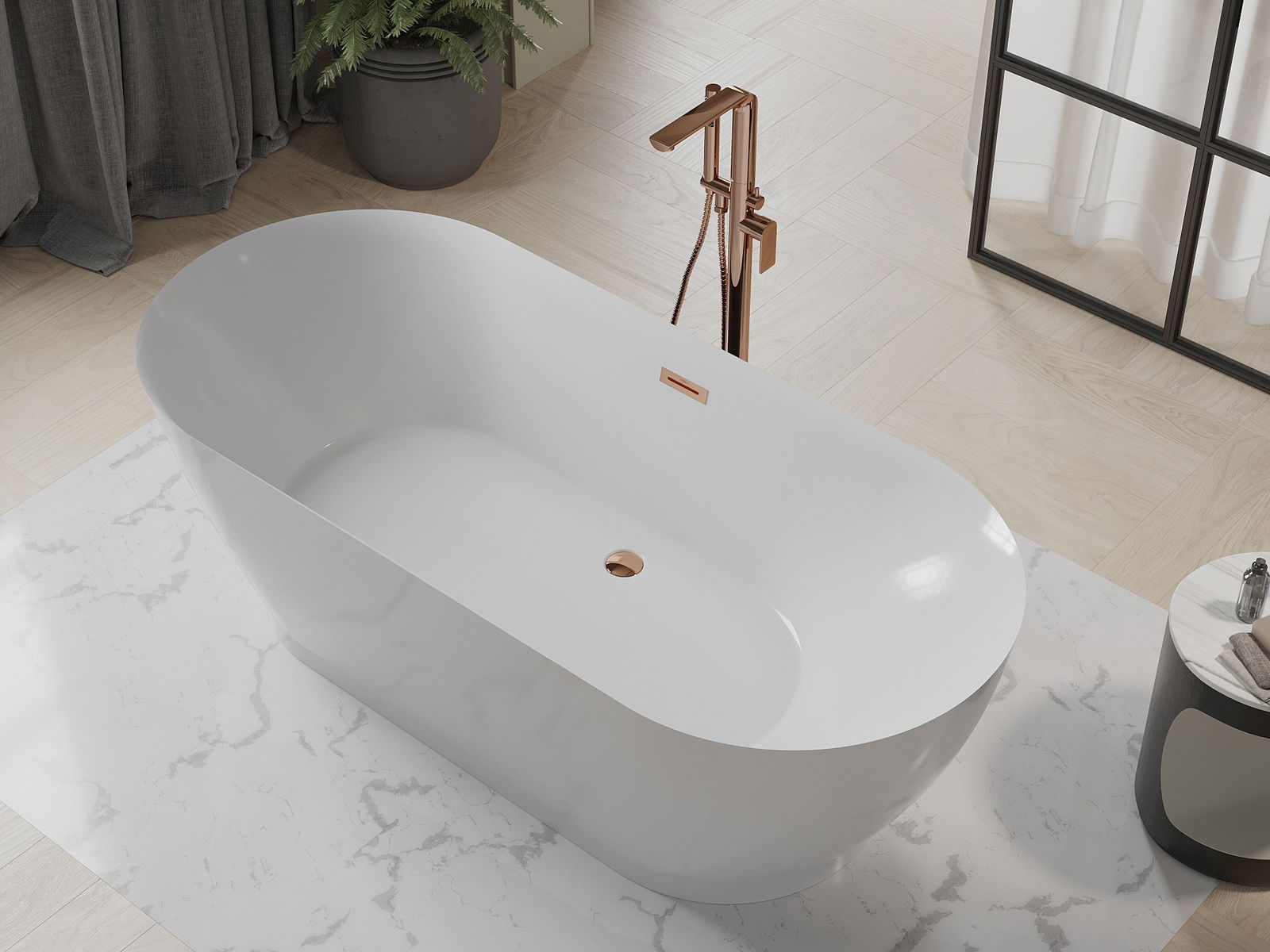 Mexen Roxy szabadon álló kád 180 x 85 cm, fehér, rózsaarany túlfolyó - 51201808500-60