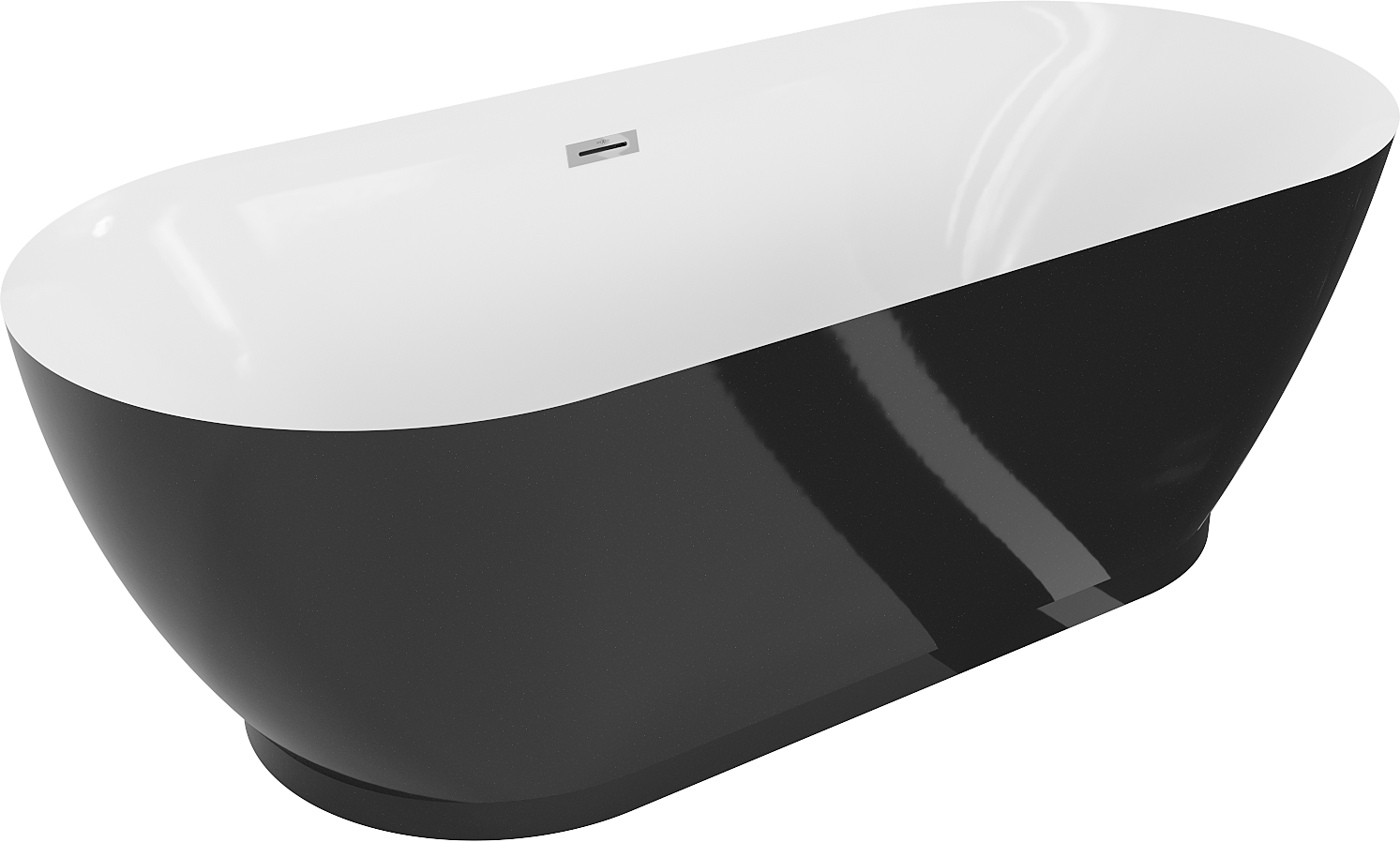 Mexen Roxy szabadon álló kád 180 x 85 cm, fehér/fekete, króm túlfolyó - 51201808575-01