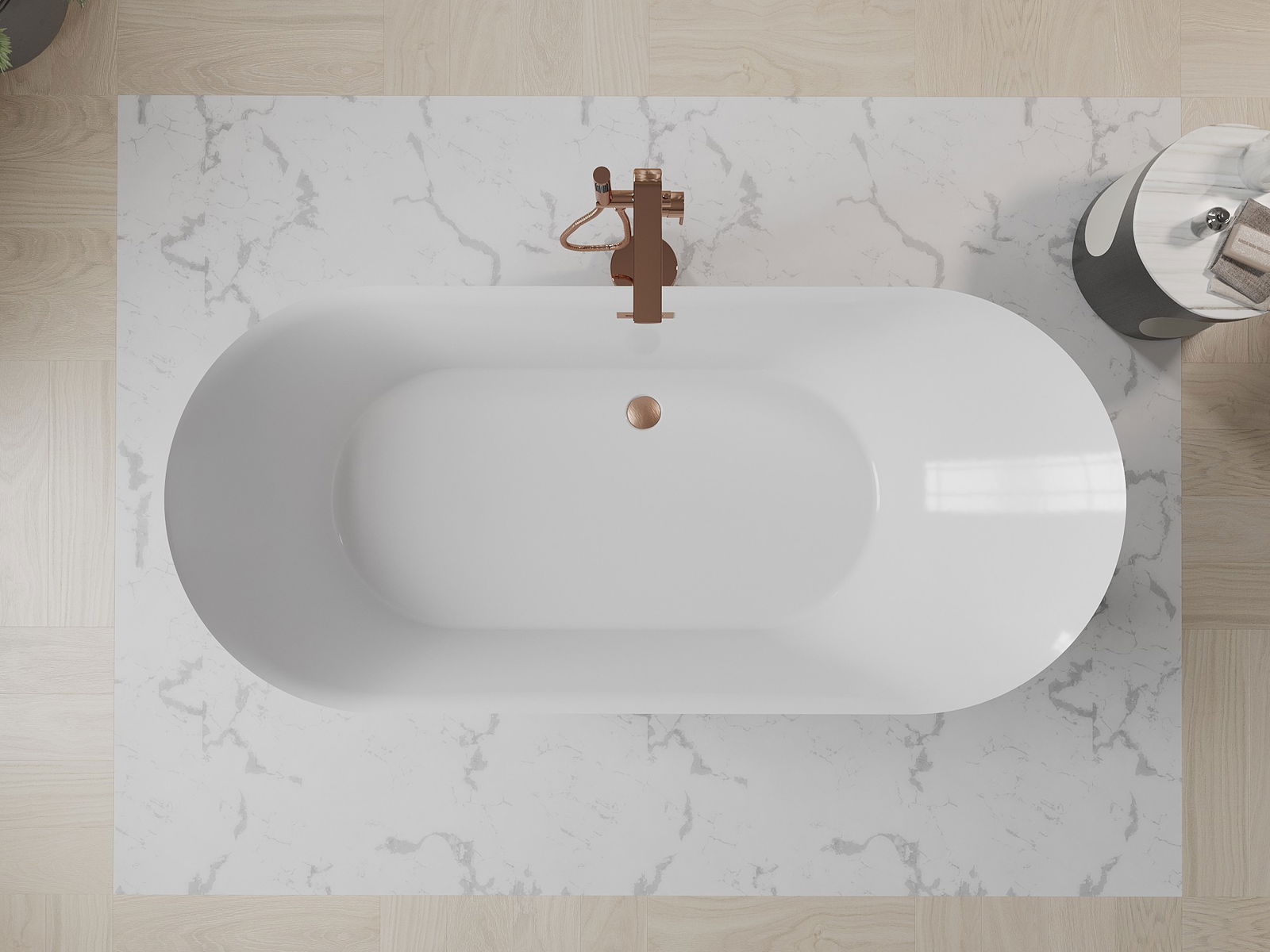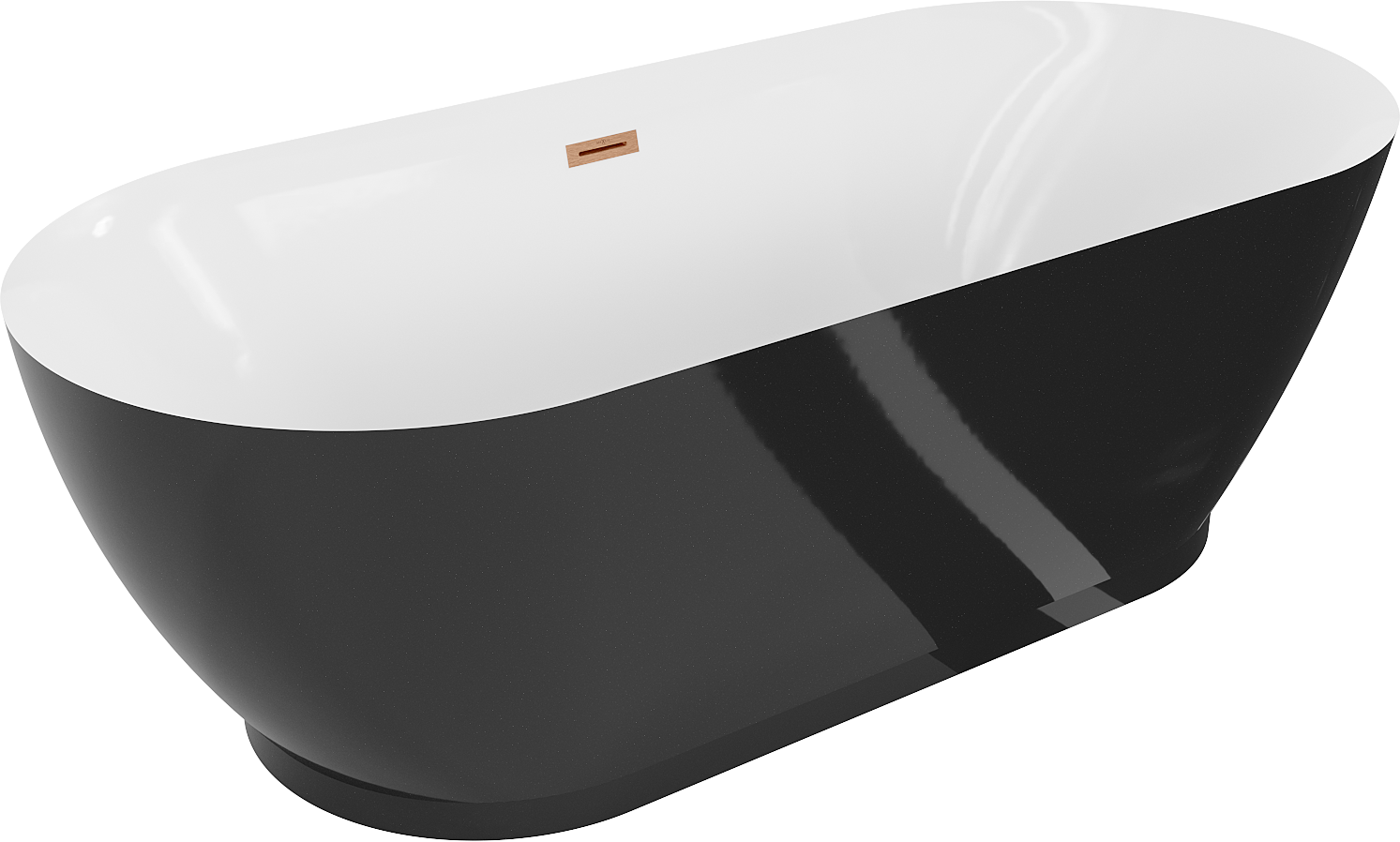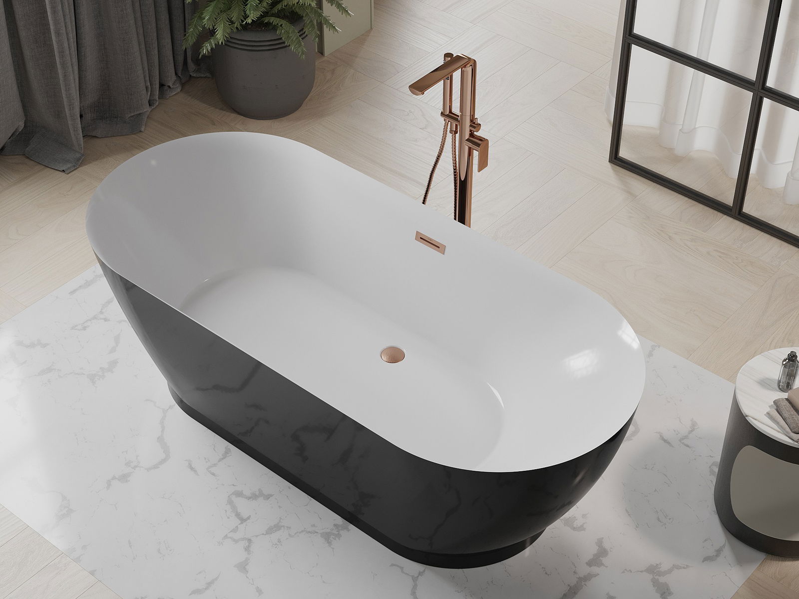 Mexen Roxy szabadon álló kád 180 x 85 cm, fehér/fekete, réz csiszolt túlfolyó - 51201808575-65
