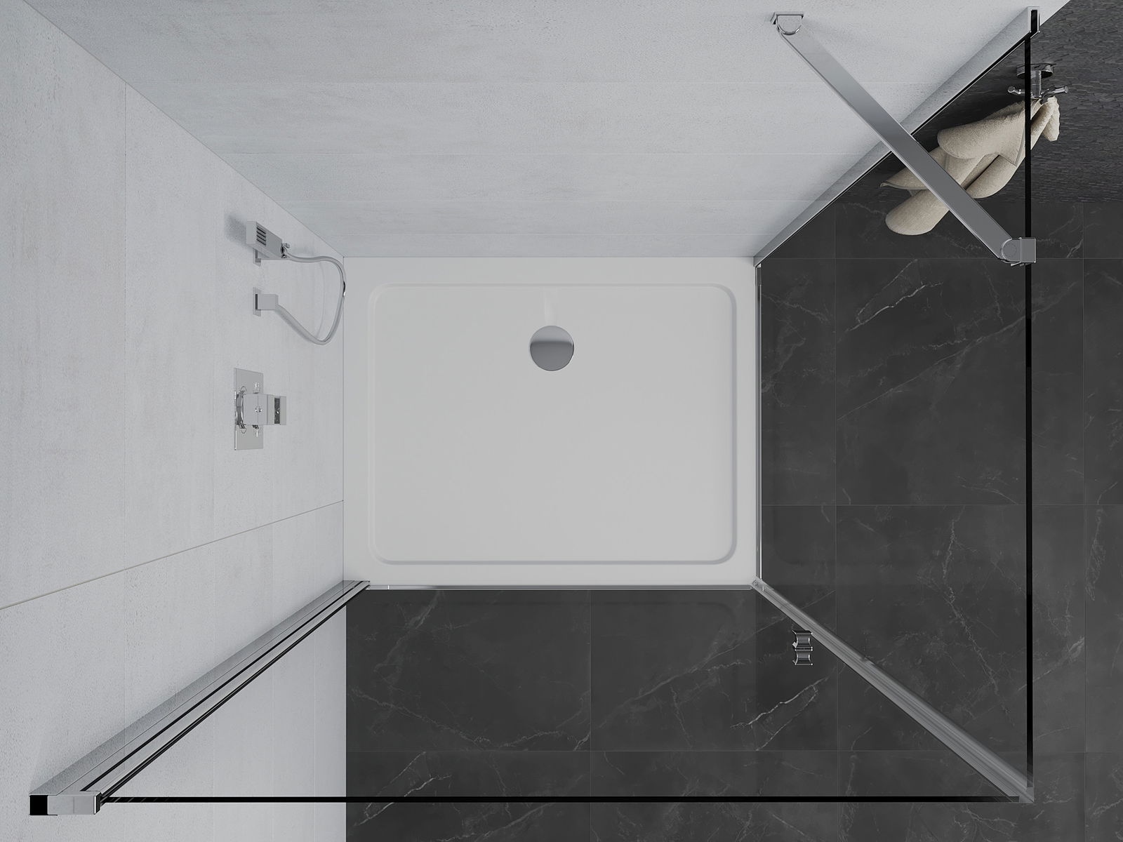 Mexen Pretoria zuhanykabin nyílóajtóval 100 x 80 cm, átlátszó, króm + Flat zuhanytálca - 852-100-080-01-00-4010