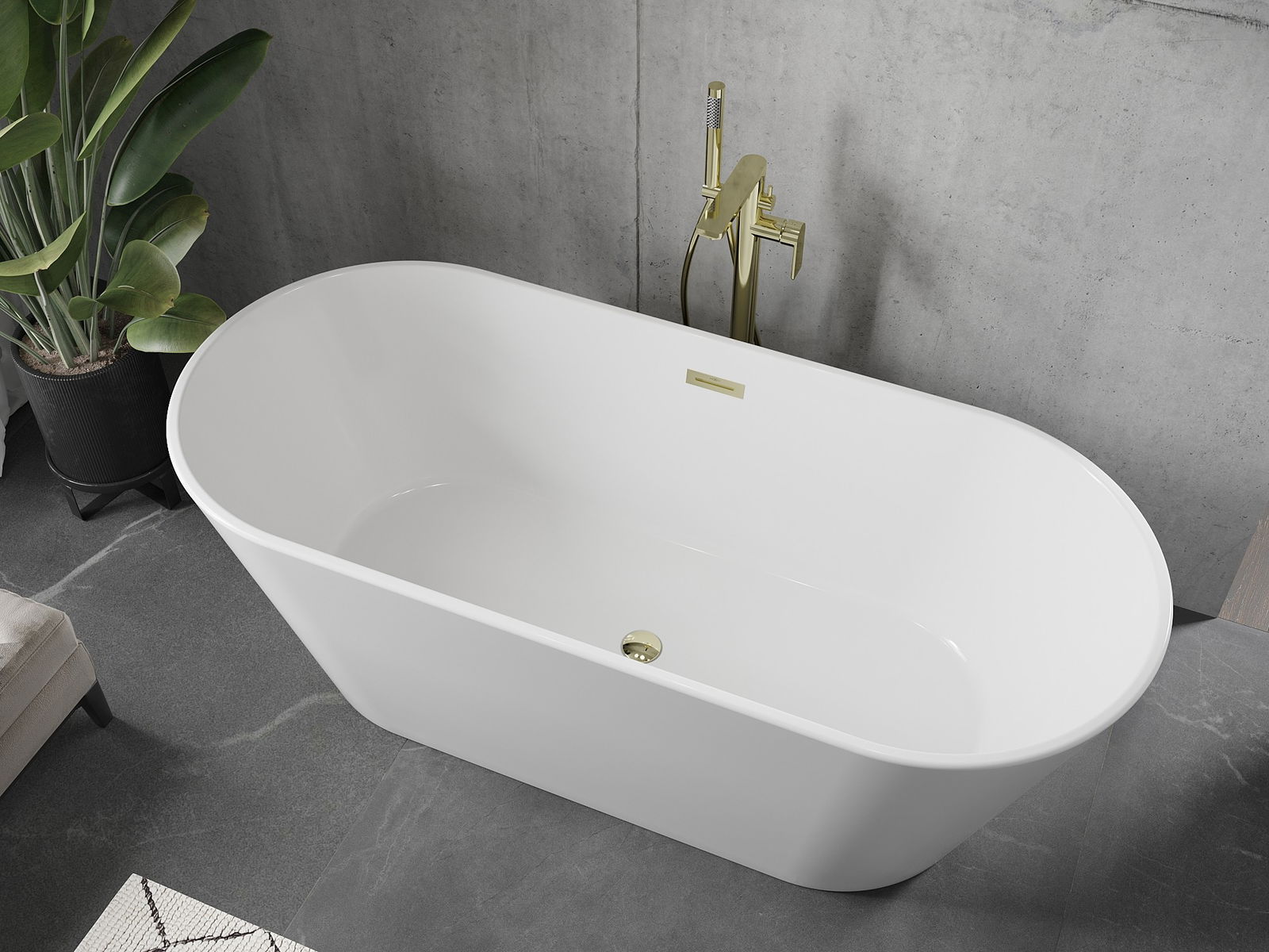 A Mexen Flavia egy szabadon álló kád, amelynek méretei 150 x 75 cm, kiváló minőségű szaniter akrilból készült. Elegáns fehér színével és arany felületével luxus megjelenést kölcsönöz. A 46 cm-es mélység és 58 cm-es magasság kényelmes használatot biztosít. A kád középen elhelyezett lefolyóval és túlfolyó nyílással rendelkezik, ami növeli funkcionalitását. Továbbá, a termék gyártásához használt anyagok mattosodás- és UV sugárzásállóak.