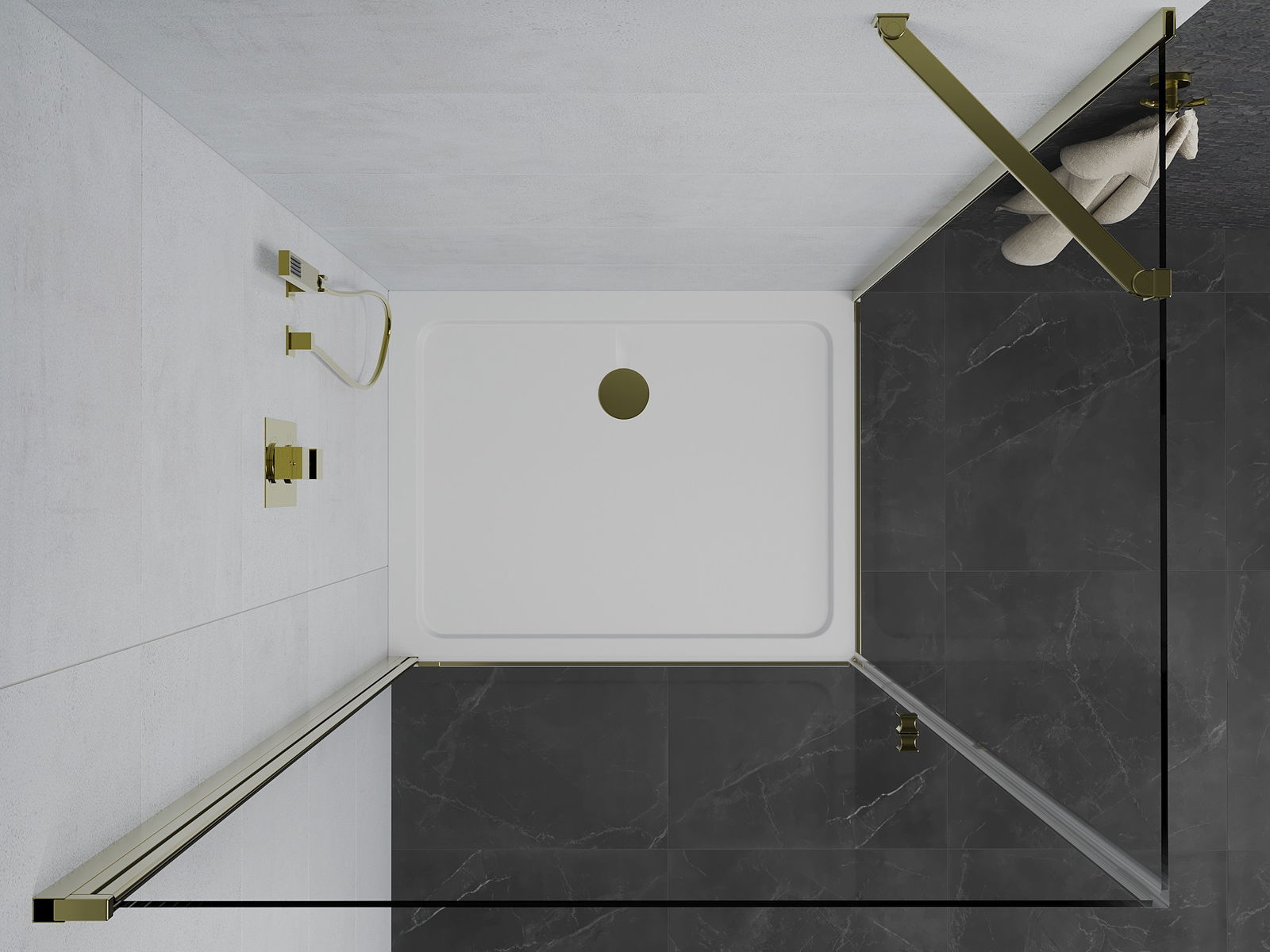 Mexen Pretoria zuhanykabin nyíló ajtóval 80 x 70 cm, átlátszó, arany + Flat zuhanytálca - 852-080-070-50-00-4010