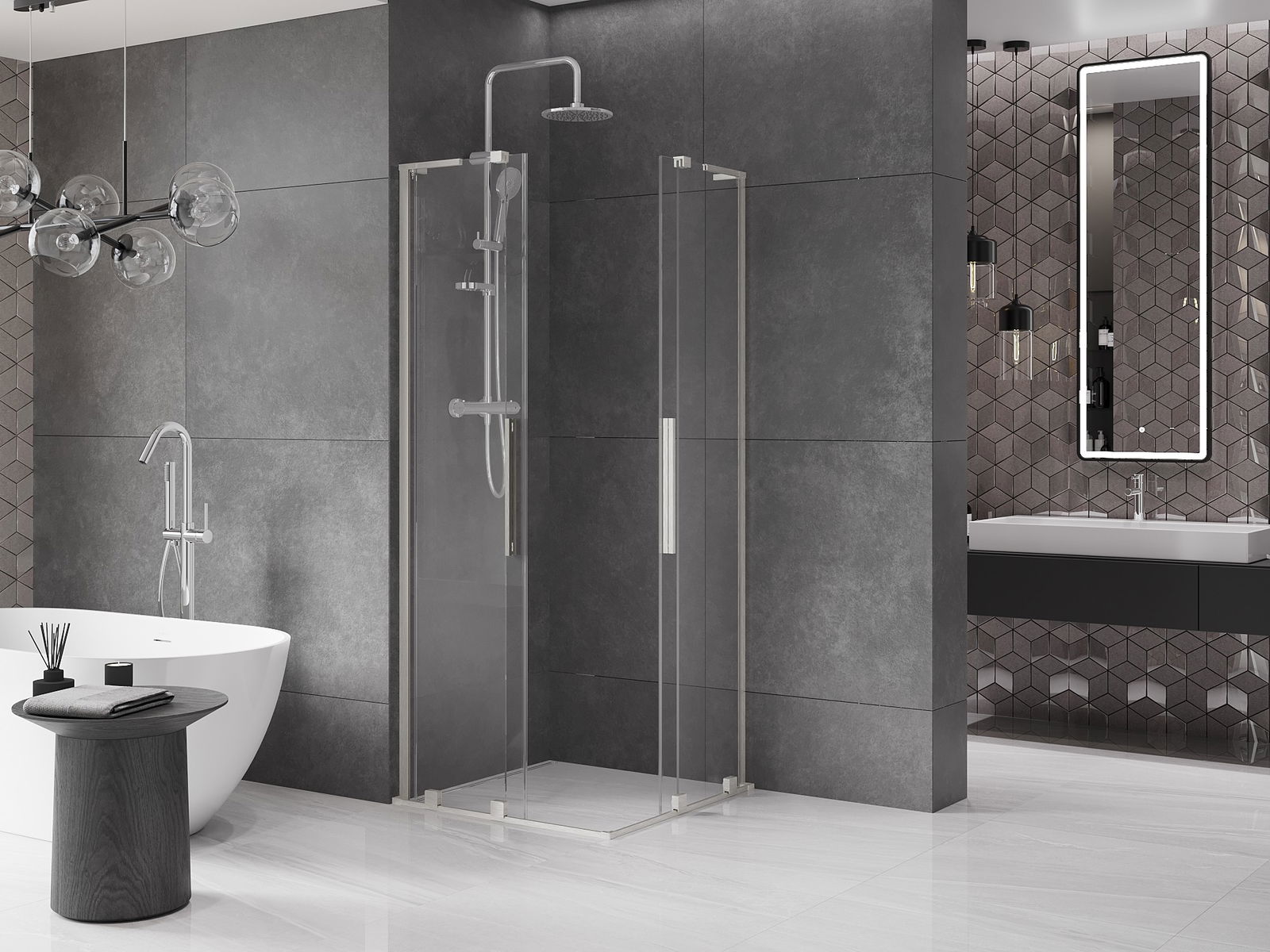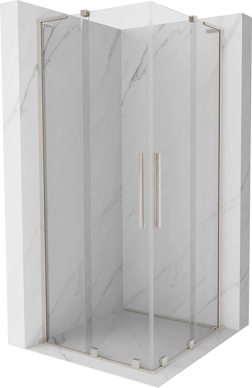 Mexen Velar L Duo tolóajtós zuhanykabin 100 x 100 cm, átlátszó, kefélt nikkel - 871-100-100-02-03-97
