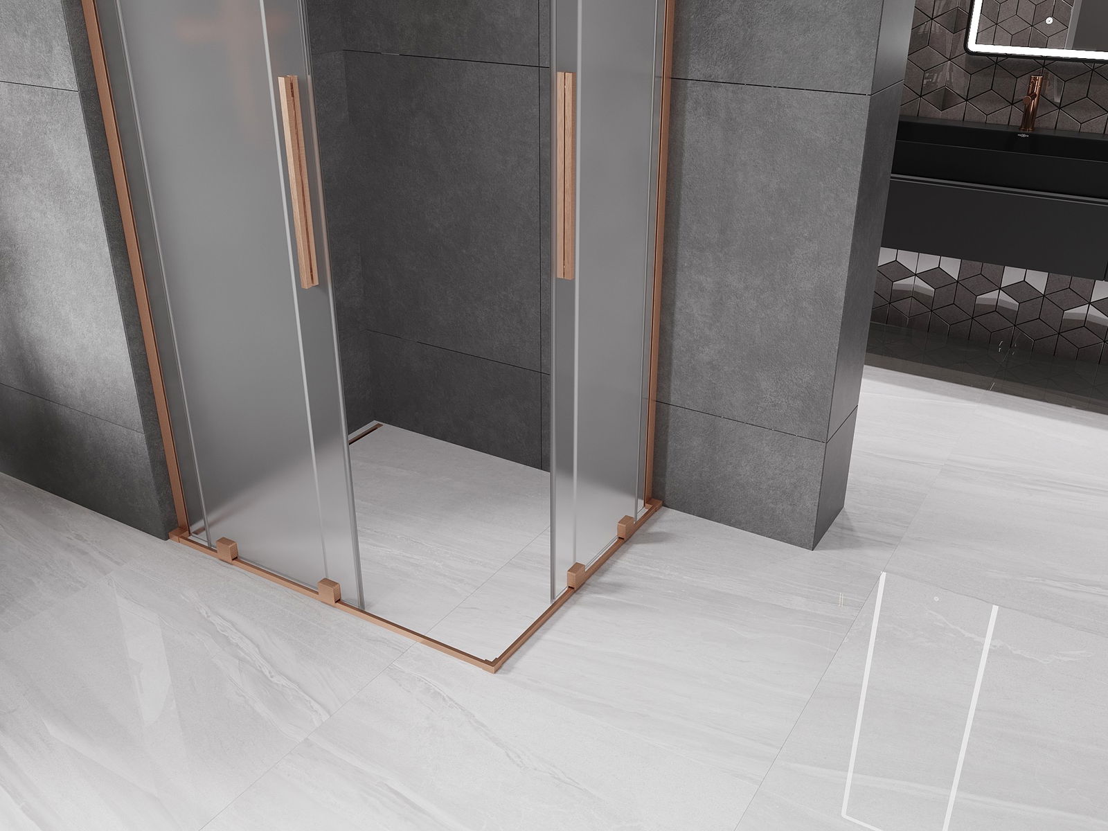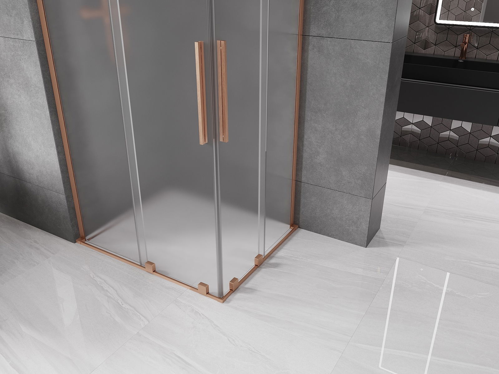 Mexen Velar L Duo eltolható zuhanykabin 90 x 80 cm, zúzmarás, csiszolt réz - 871-090-080-02-33-65