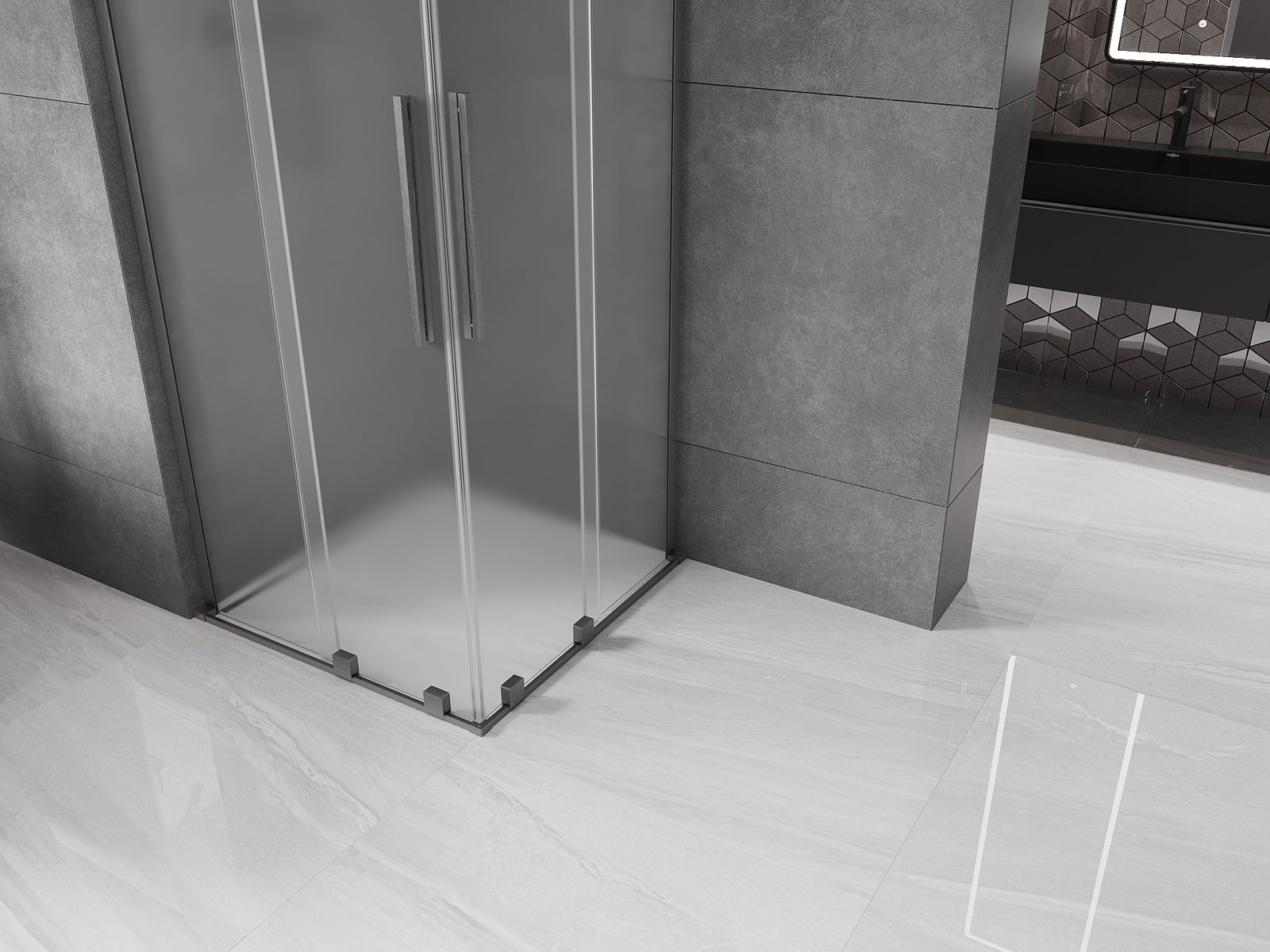 Mexen Velar L Duo tolóajtós zuhanykabin 90 x 90 cm, fagyott, szálcsiszolt gun gray - 871-090-090-02-33-66
