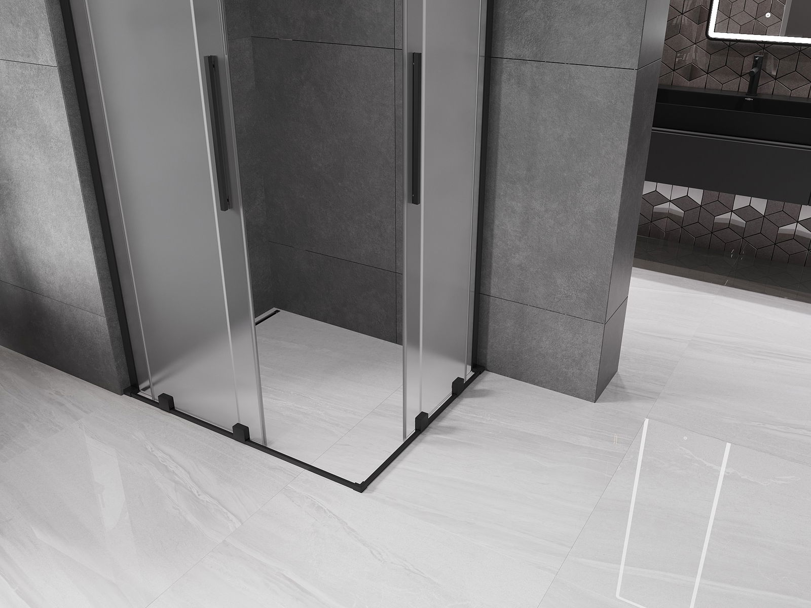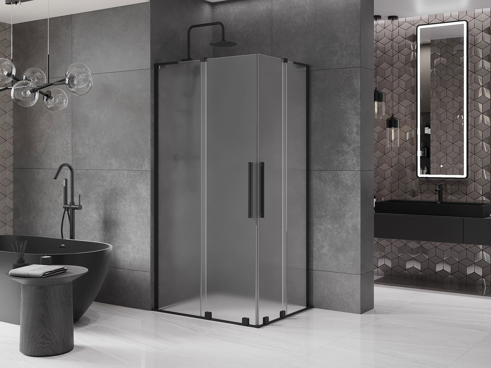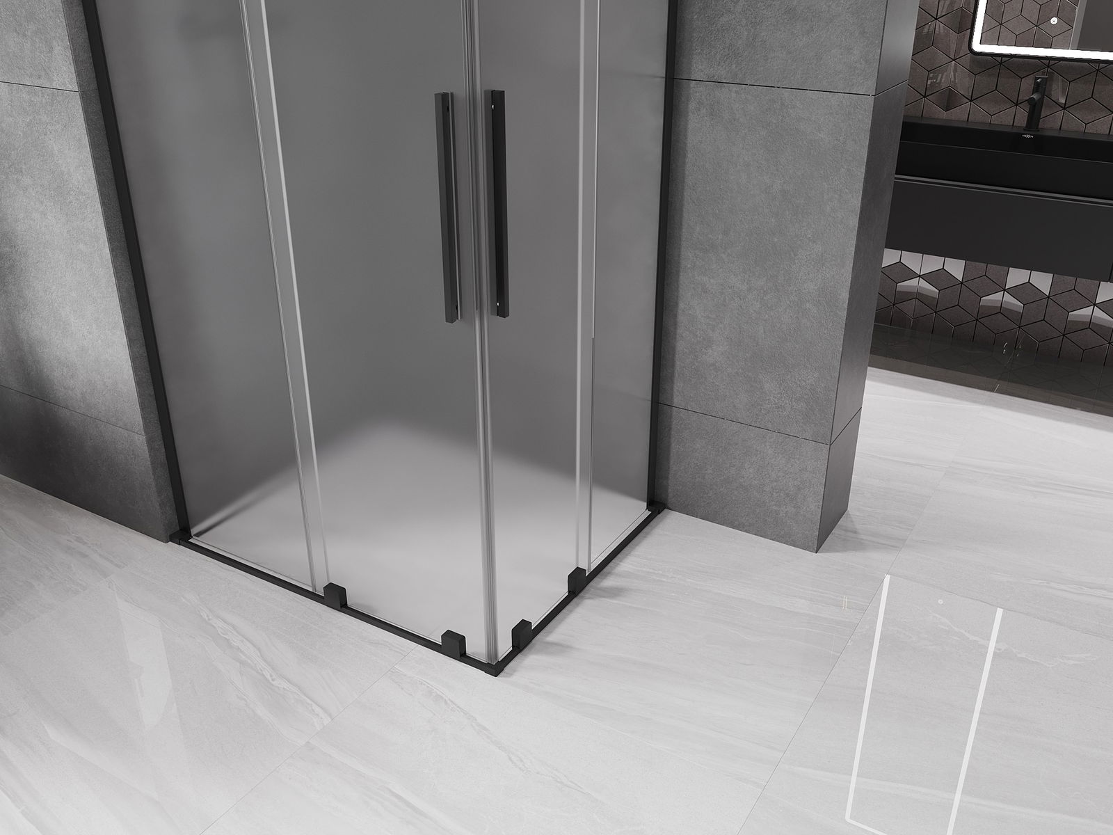 Mexen Velar L Duo tolóajtós zuhanykabin 100 x 90 cm, fagyos, fekete - 871-100-090-02-33-70