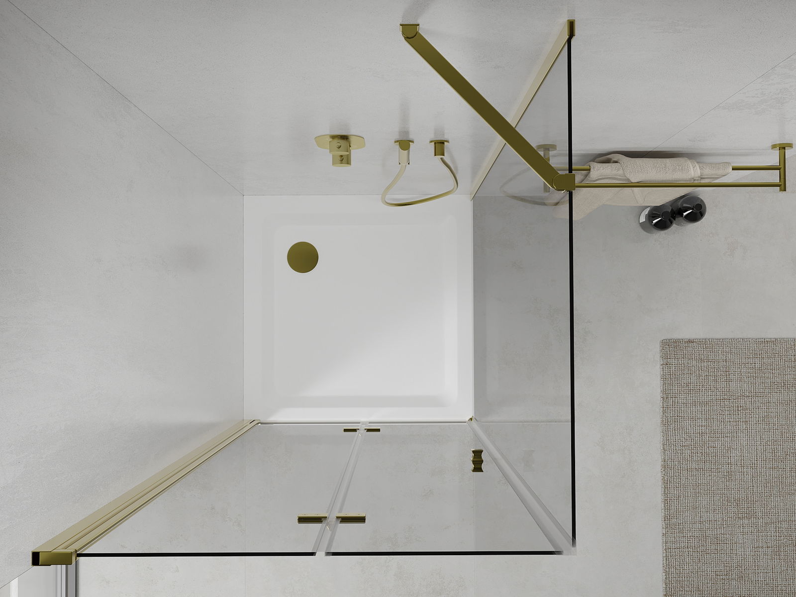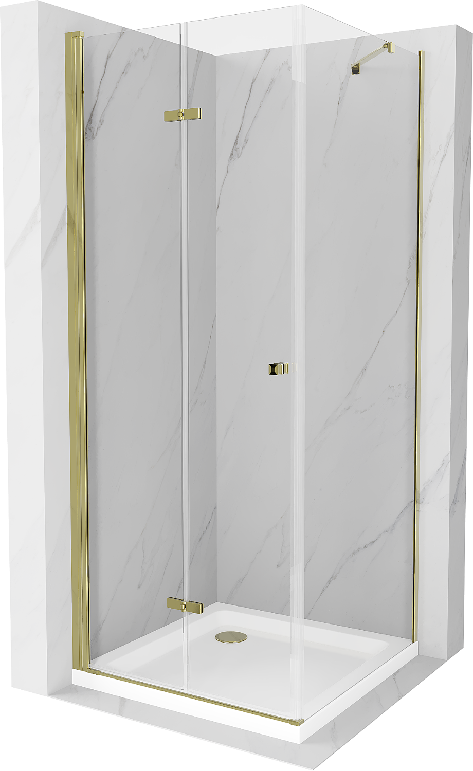 Mexen Lima összehajtható zuhanykabin 80 x 80 cm, átlátszó, arany + Flat zuhanytálca - 856-080-080-50-00-4010