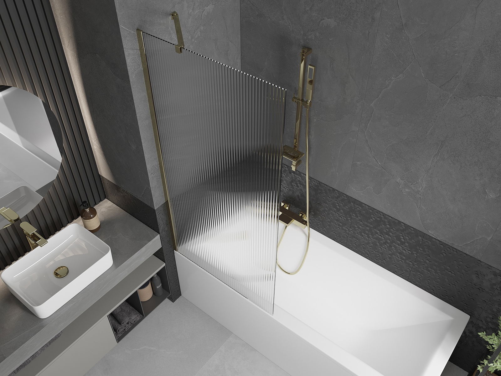 Mexen Next egyajtós fürdőkád paraván 80 x 150 cm, csíkos, arany - 895-080-000-00-09-50