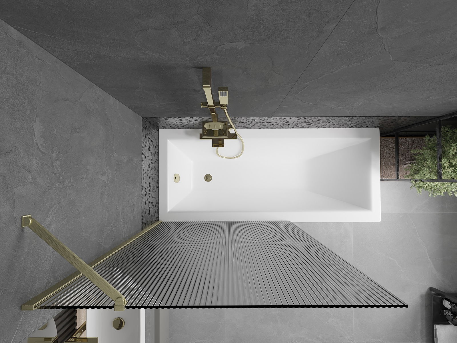 Mexen Next kádparaván 1-szárnyú 100 x 150 cm, csíkos, arany kefélt - 895-100-000-00-09-55