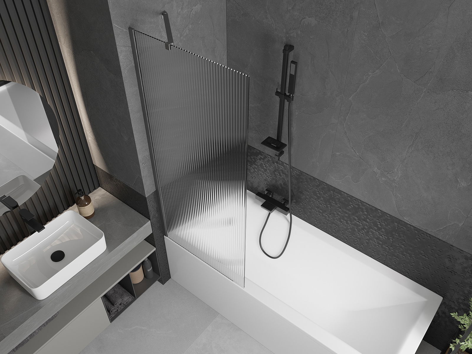 Mexen Next egyajtós kádparaván 70 x 150 cm, csíkos, gun gray kefe - 895-070-000-00-09-66