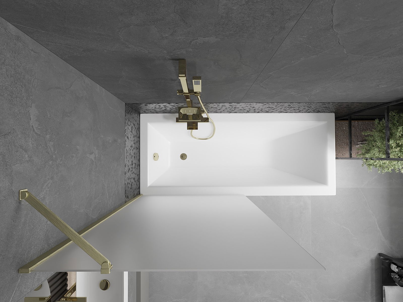 Mexen Next fürdőszobai paraván, 1-szárnyú 90 x 150 cm, opál, arany szálcsiszolt - 895-090-000-00-30-55
