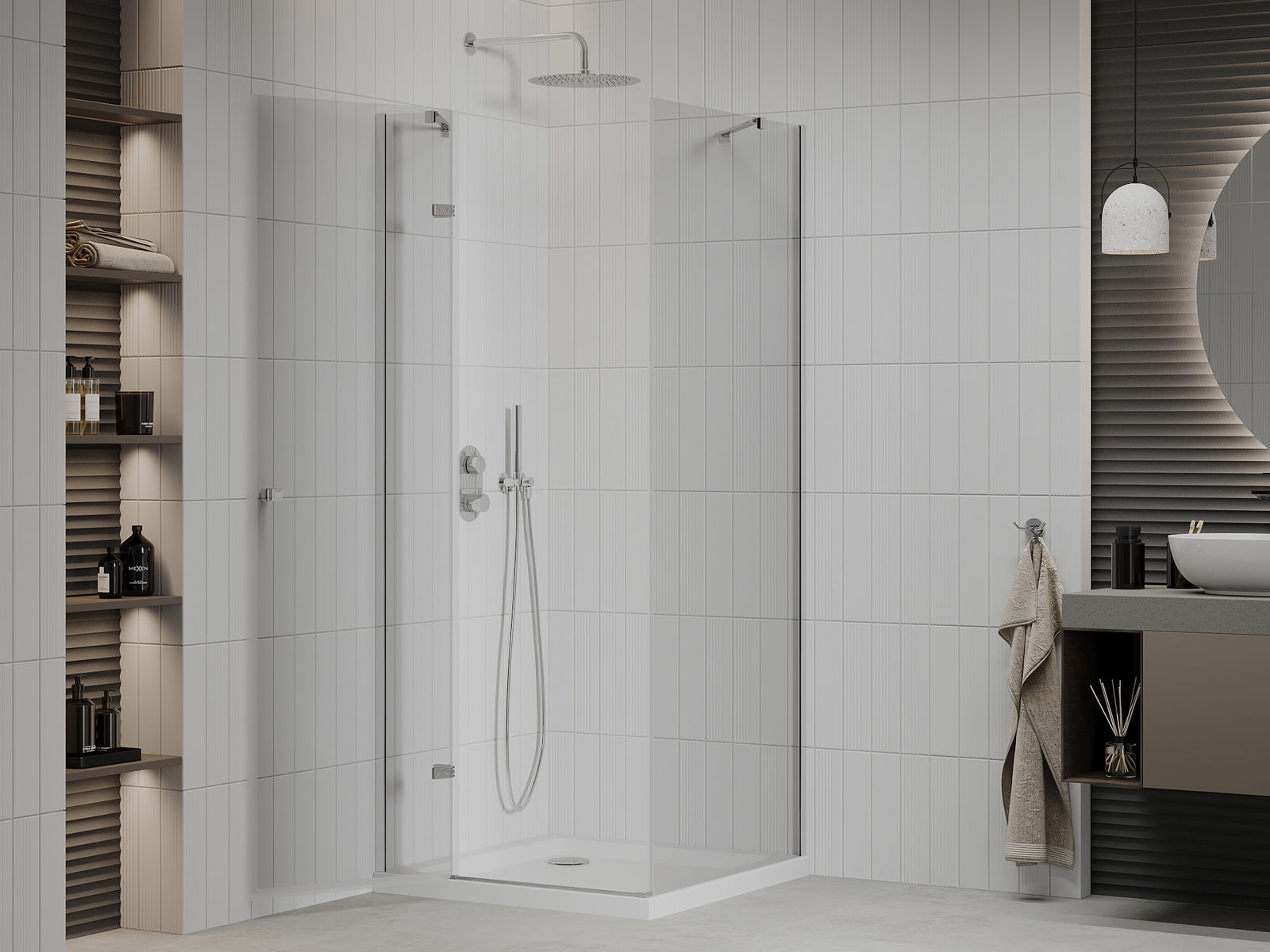 Mexen Roma nyíló zuhanykabin 80 x 80 cm, átlátszó, króm + Flat zuhanytálca - 854-080-080-01-00-4010