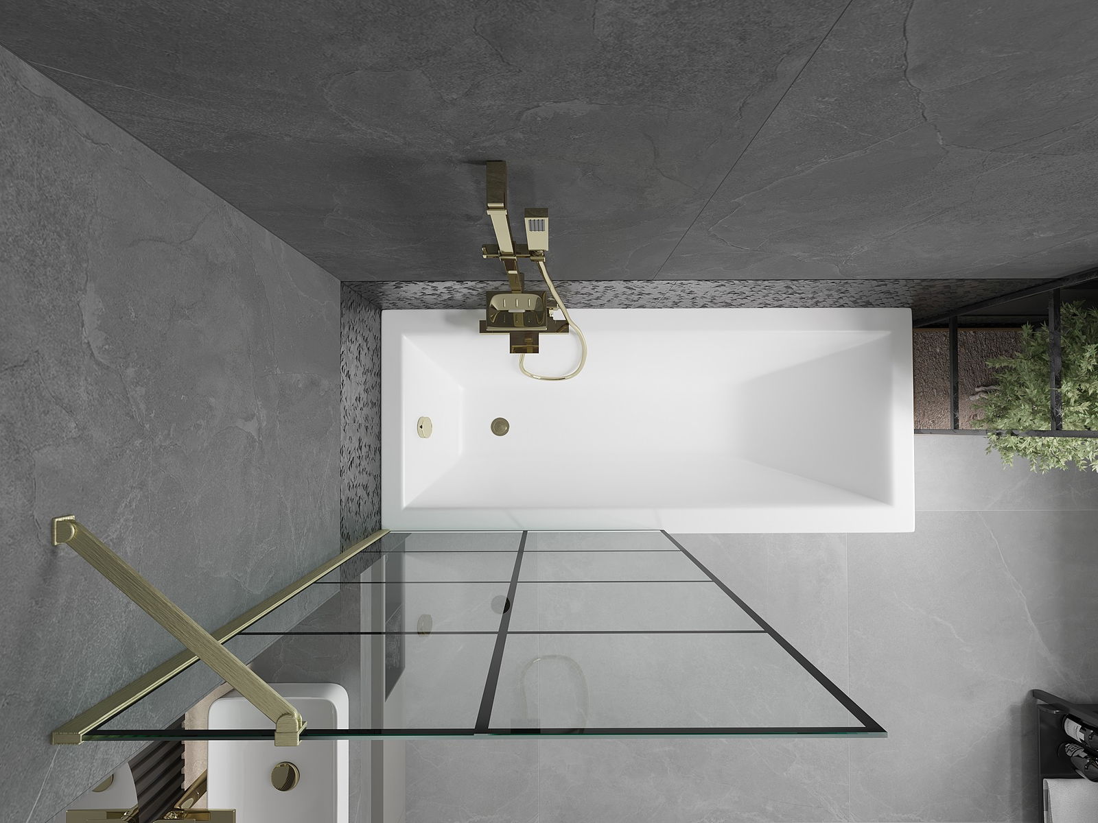Mexen Next fürdőkád paraván 1-szárnyú 90 x 150 cm, fekete rács, arany szálcsiszolt - 895-090-000-00-77-55