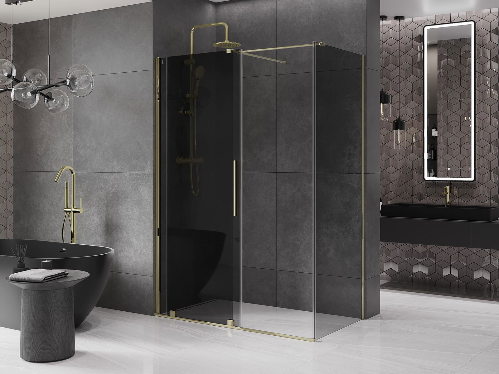 Mexen Velar eltolható zuhanykabin 150 x 90 cm, grafit, arany - 871-150-090-41-50
