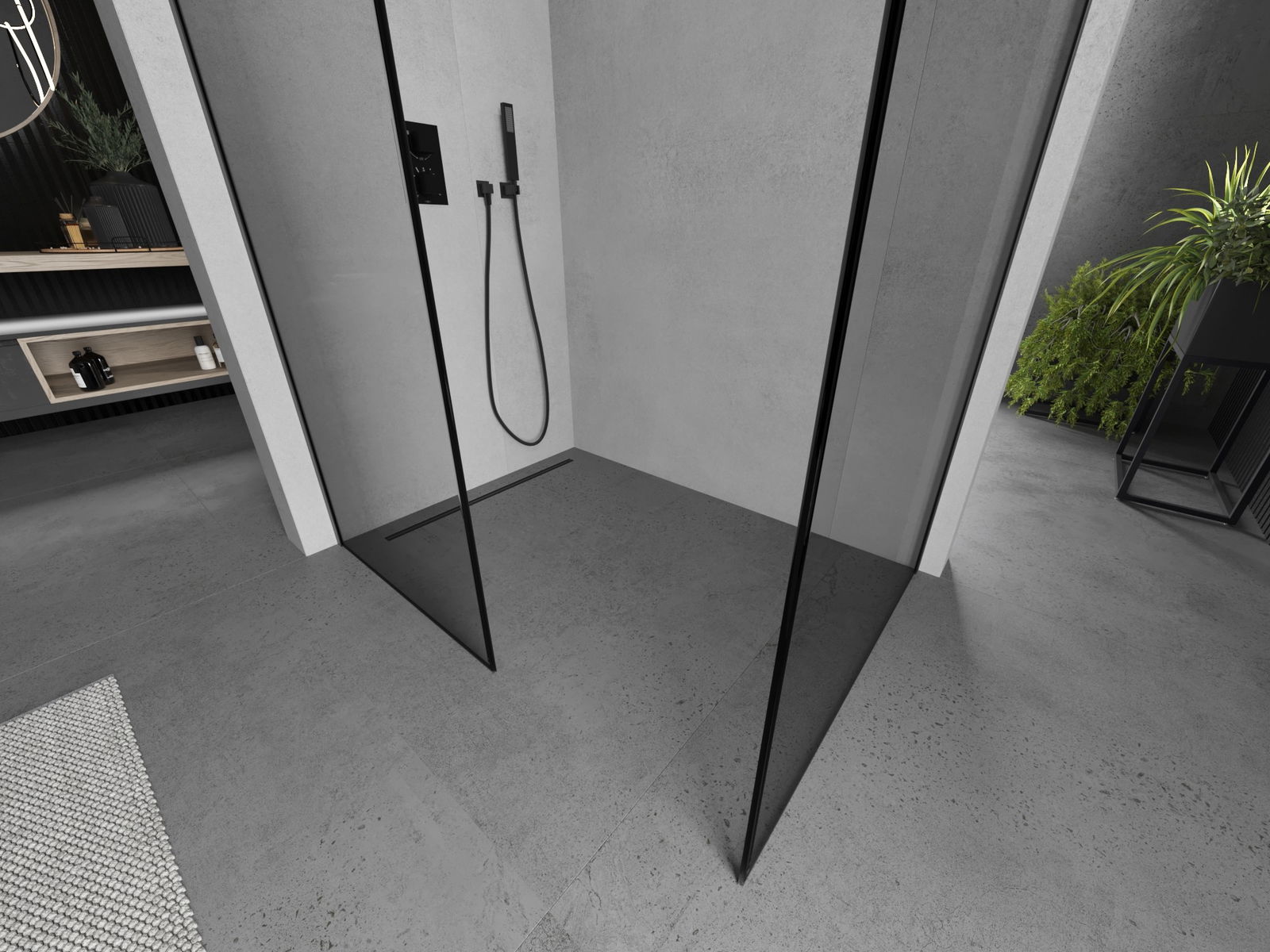 Mexen Kioto zuhanyfal Walk-in 140 x 110 cm, fekete keret, gun metal - 800-140-202-95-70-110