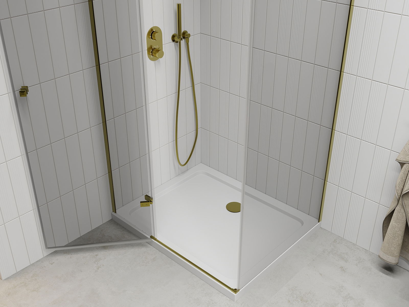 Mexen Roma nyílóajtós zuhanykabin 70 x 100 cm, átlátszó, arany + Flat zuhanytálca - 854-070-100-50-00-4010