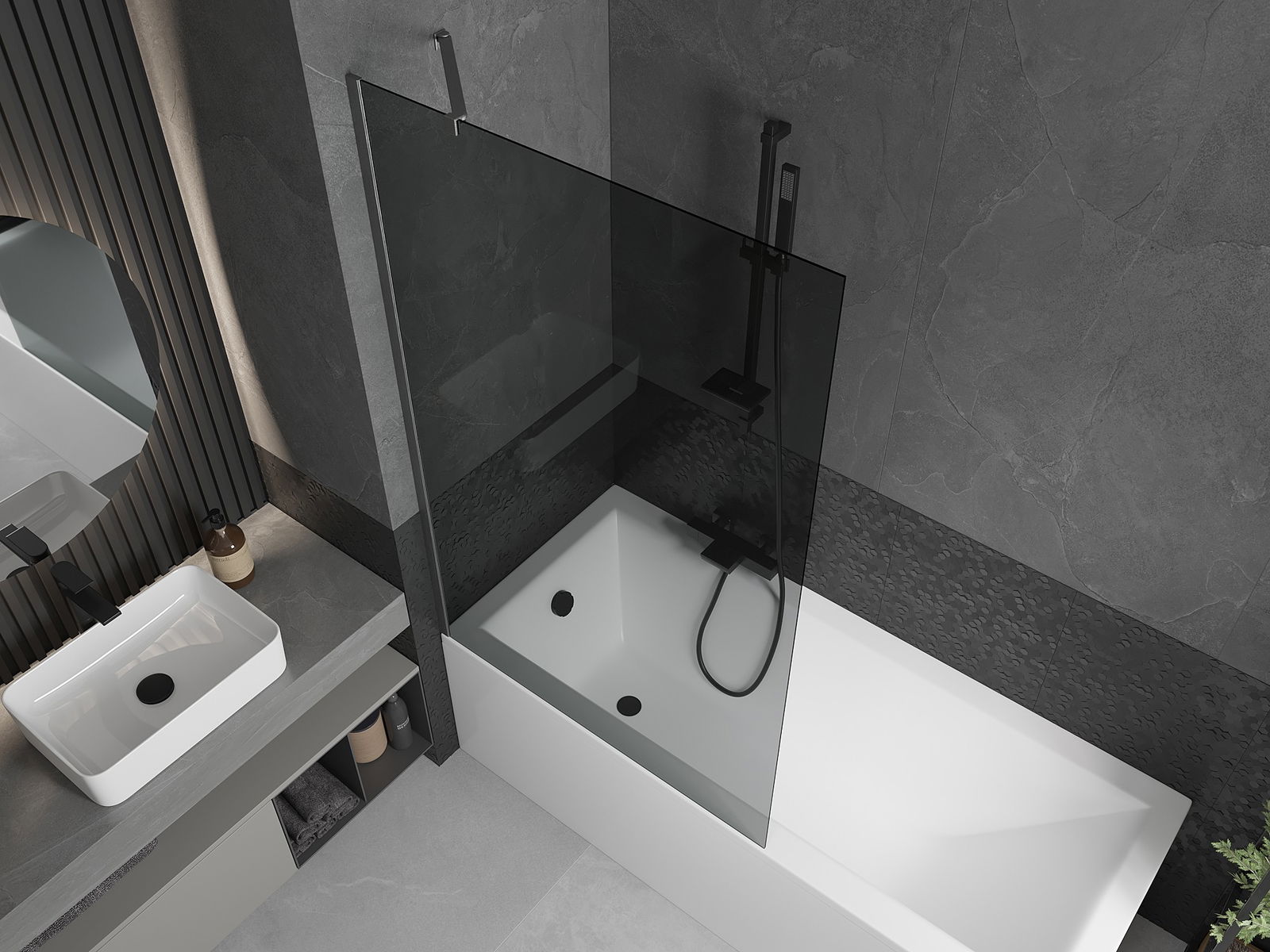 Mexen Next 1-szárnyú kádparaván 100 x 150 cm, grafit, szálcsiszolt gun gray - 895-100-000-00-40-66