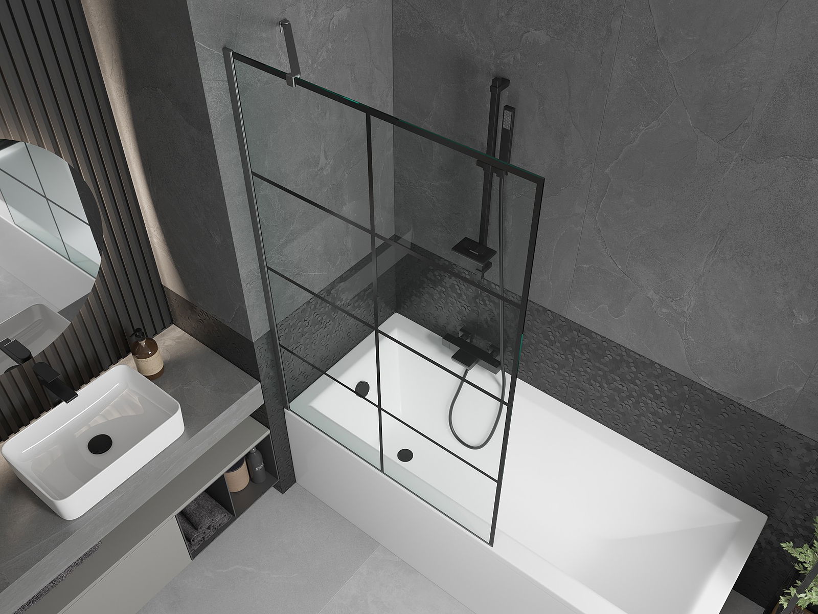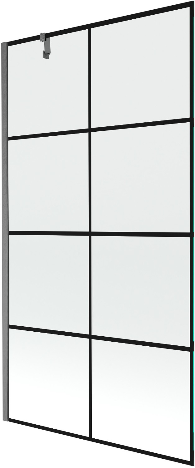 Mexen Next fürdőkád paraván, 1-szárnyú 100 x 150 cm, fekete rács, gun gray kefe - 895-100-000-00-77-66