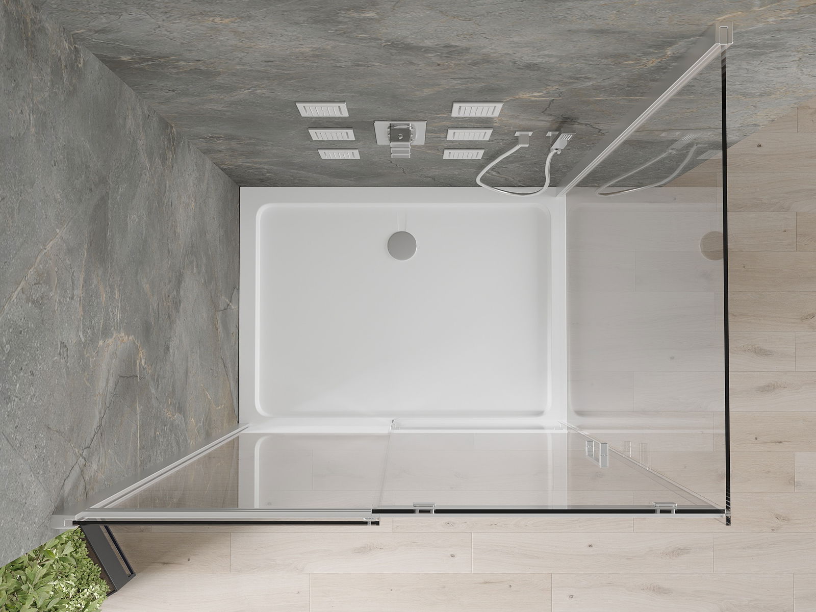 Mexen Omega tolóajtós zuhanykabin 110 x 70 cm, átlátszó, króm + Flat zuhanytálca - 825-110-070-01-00-4010
