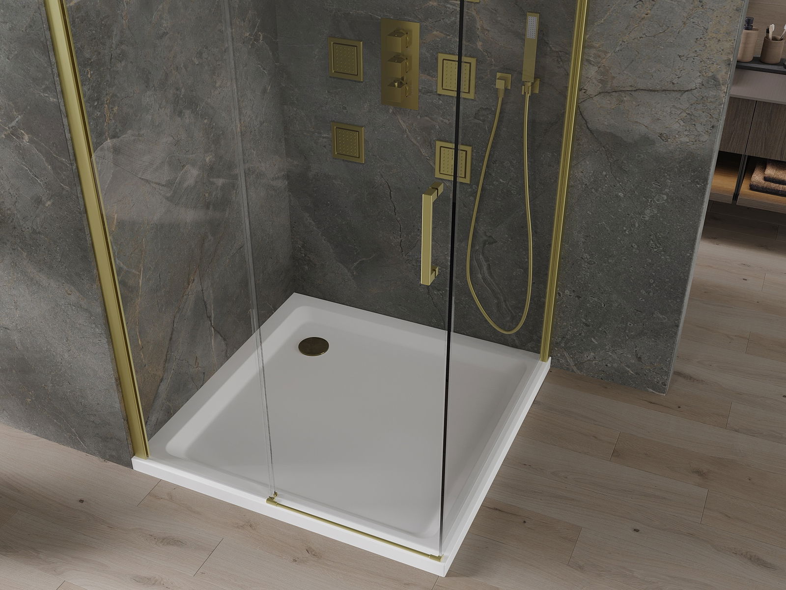 A zuhany tálcának alacsony küszöbértéke van, ami megkönnyíti a belépést és a zuhany elhagyását. Egyedülálló és időtlen kivitelben adja a szobát, így a fürdőszobát kényelmes és esztétikai helyévé teszi a napi relaxációhoz.