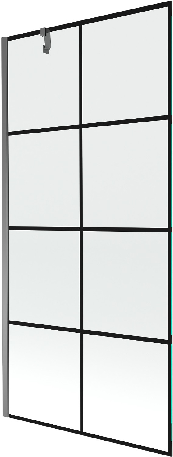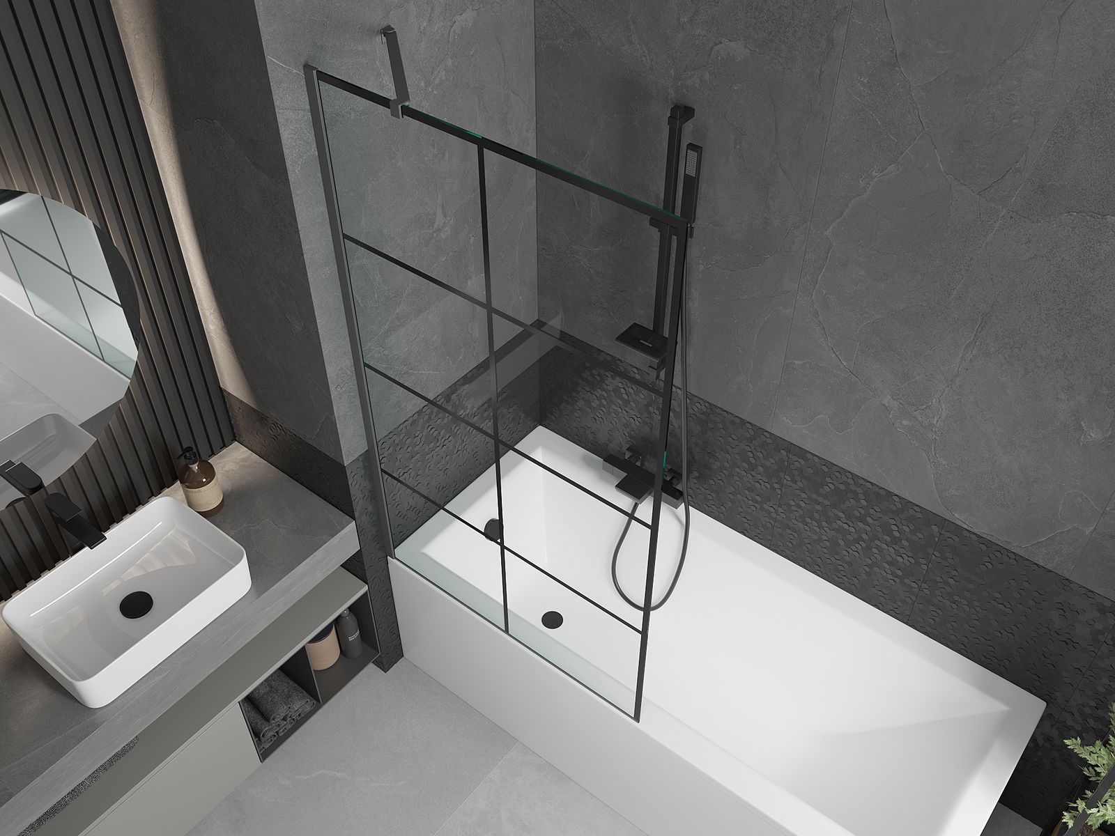 Mexen Next 1-szárnyú kádparaván 90 x 150 cm, fekete rács, gun metal - 895-090-000-00-77-95