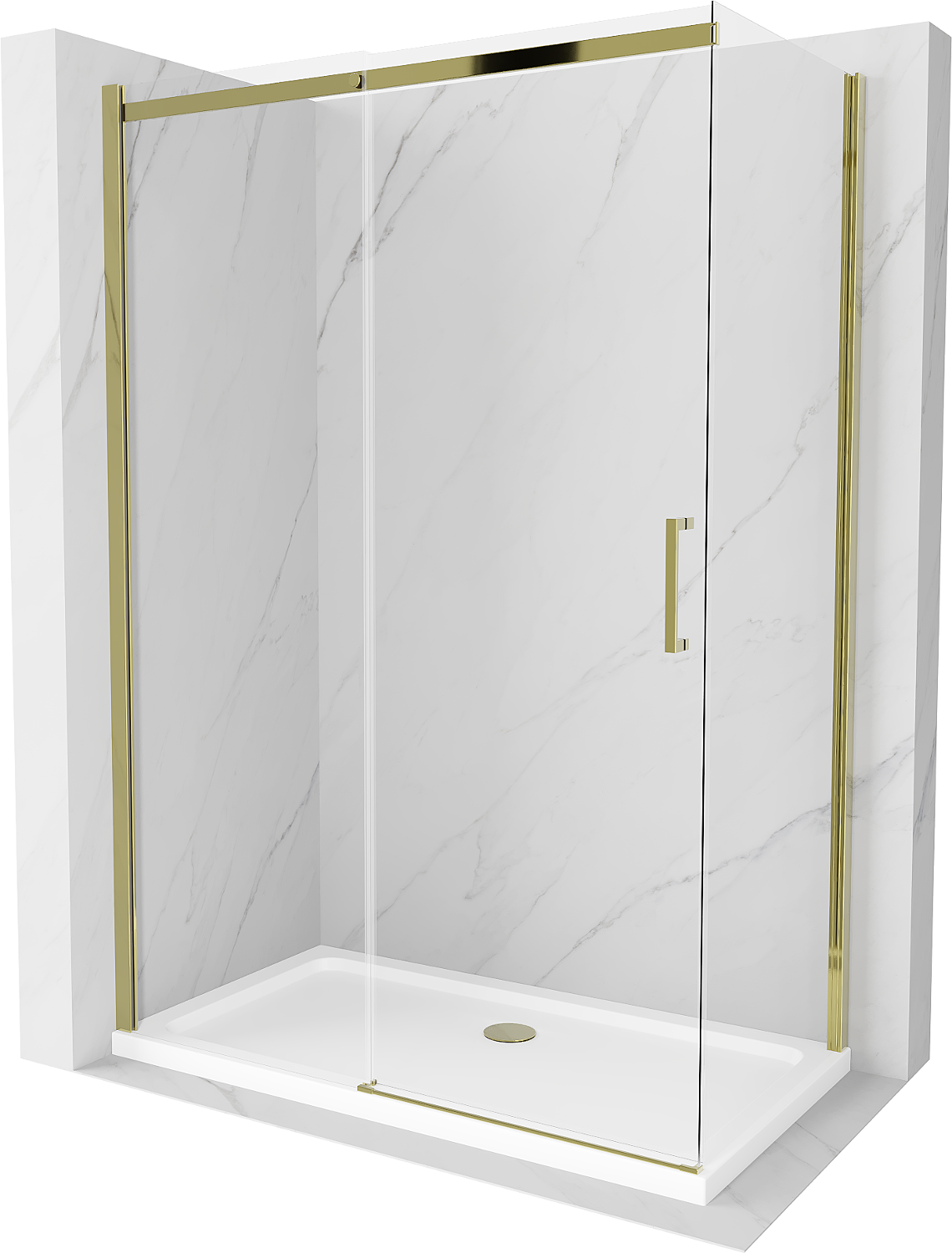 Mexen Omega 130 x 70 cm toló zuhanykabin, átlátszó, arany + Flat zuhanytálca - 825-130-070-50-00-4010