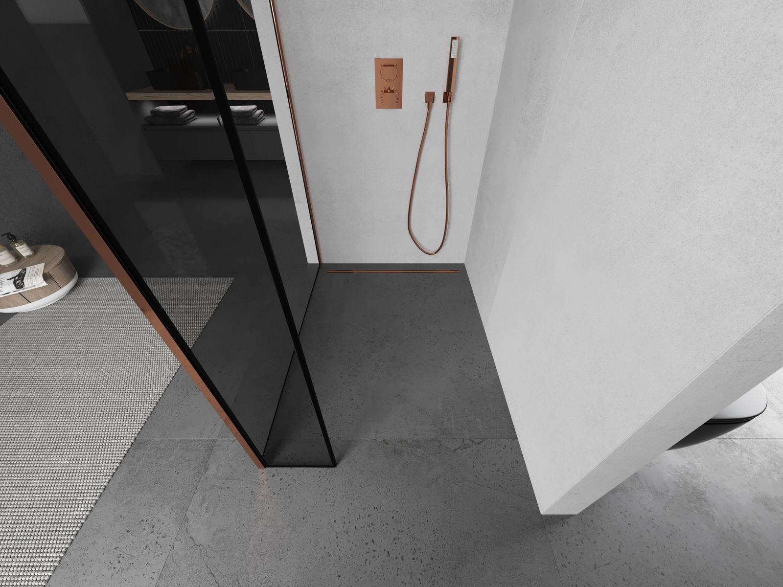 Mexen Kioto zuhanyfal Walk-in 90 x 40 cm, fekete keret, rózsaarany - 800-090-212-60-70-040