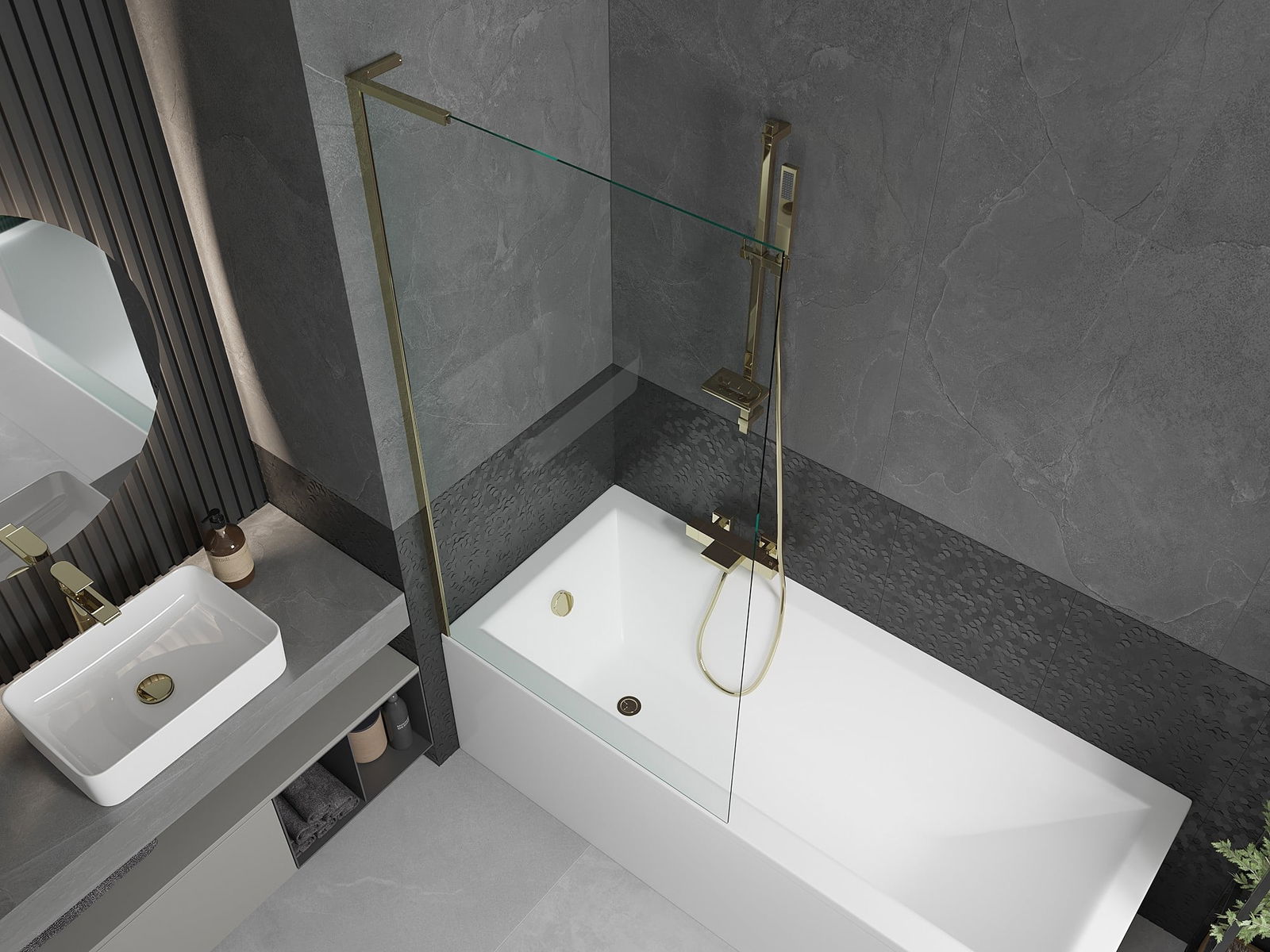 Mexen Next L 1-szárnyú fürdőszobai paraván 90 x 150 cm, átlátszó, arany - 895-090-000-03-00-50
