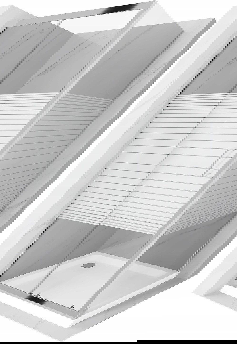 Mexen Apia 90 x 90 cm-es tolóajtós zuhanykabin, fehér csíkok, króm + Flat zuhanytálca - 840-090-090-01-20-4010