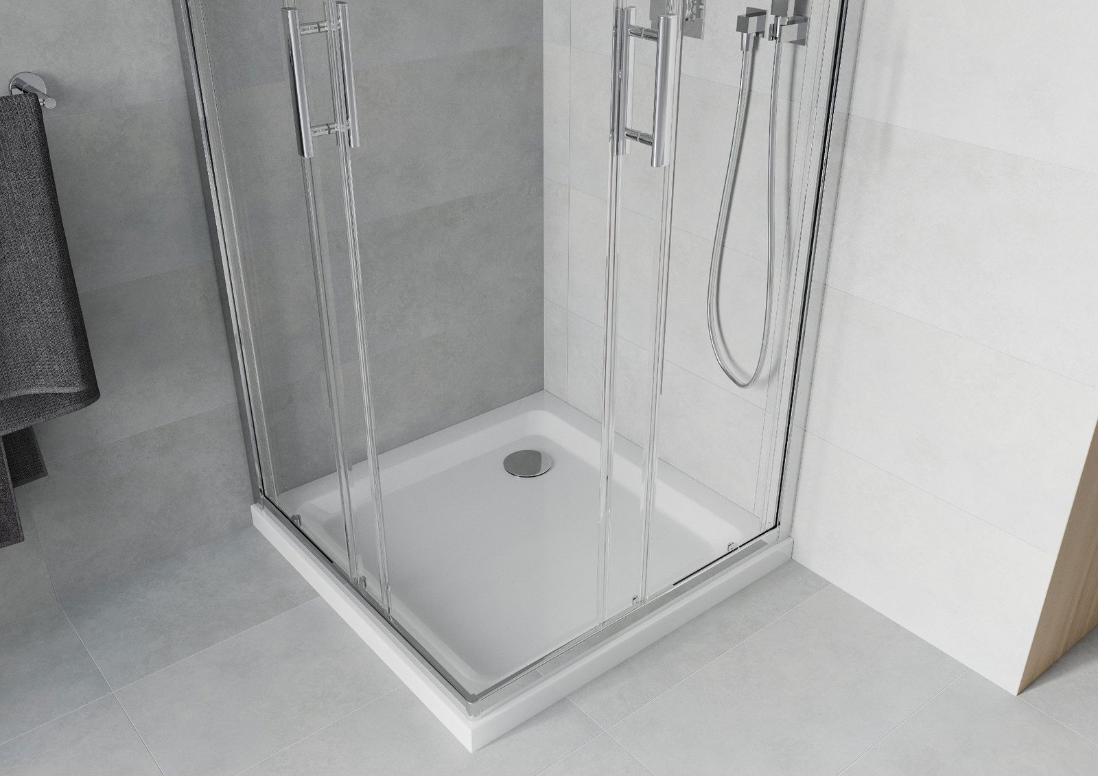 Mexen Rio négyzet alakú zuhanykabin 70 x 70 cm, átlátszó, króm + Flat zuhanytálca, fehér - 860-070-070-01-00-4010