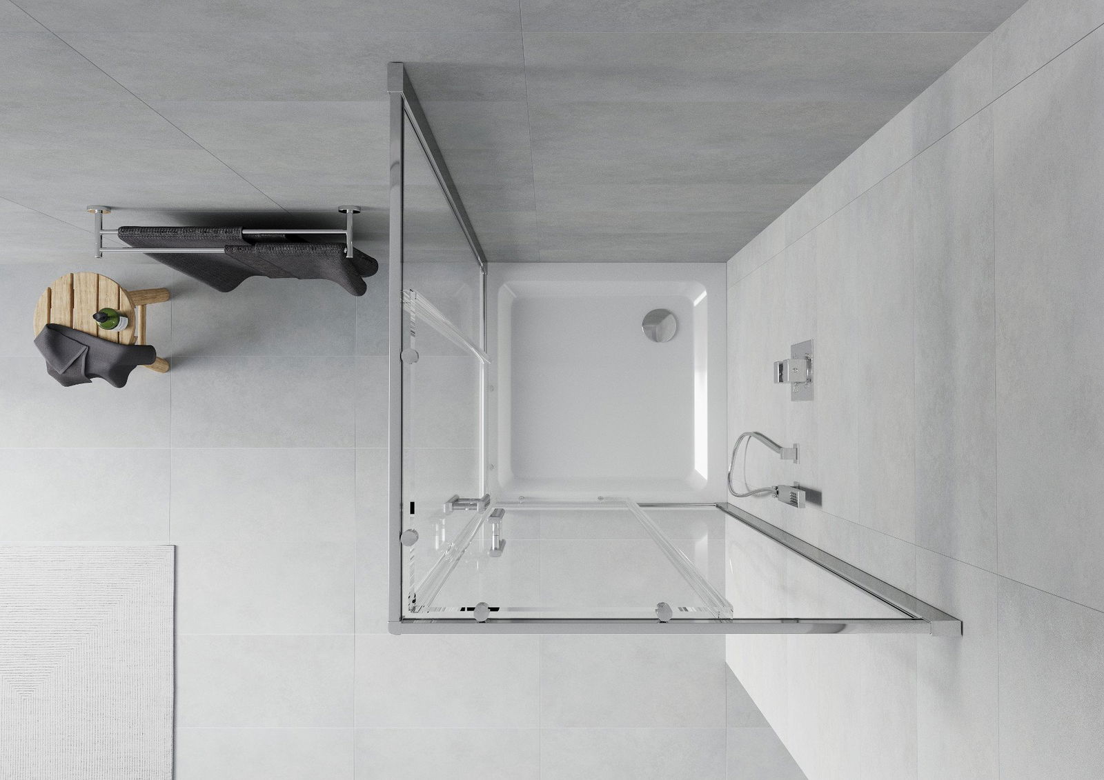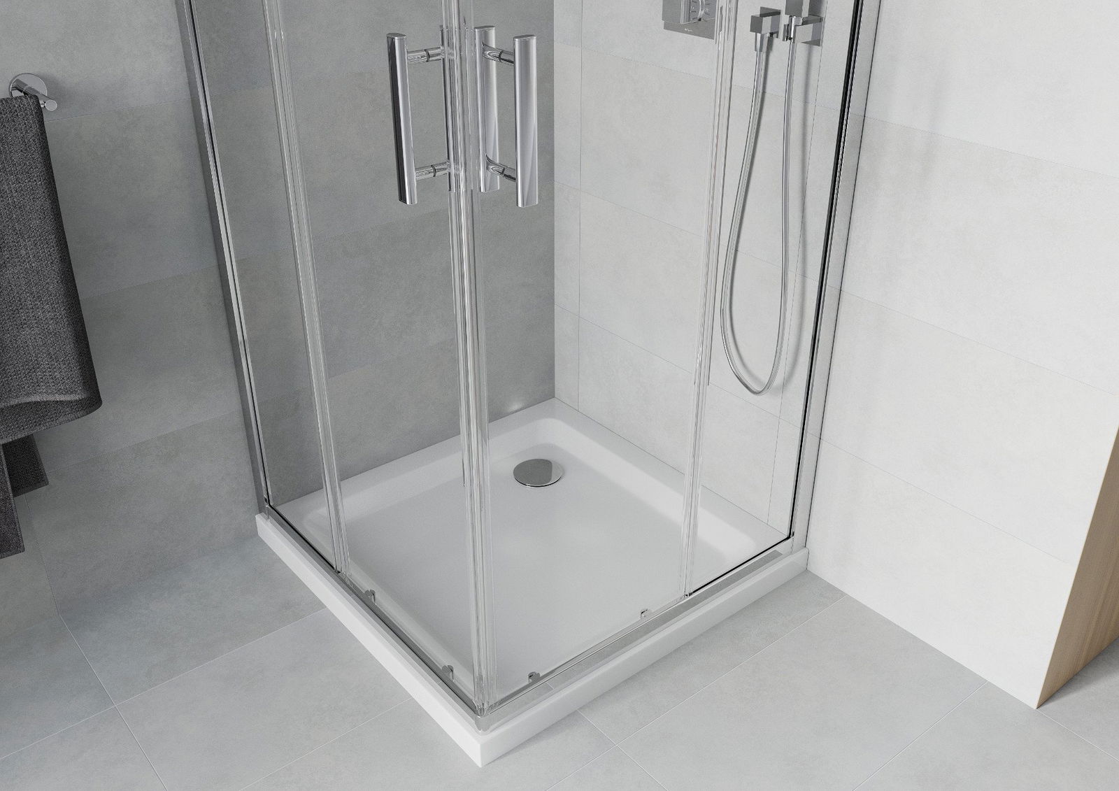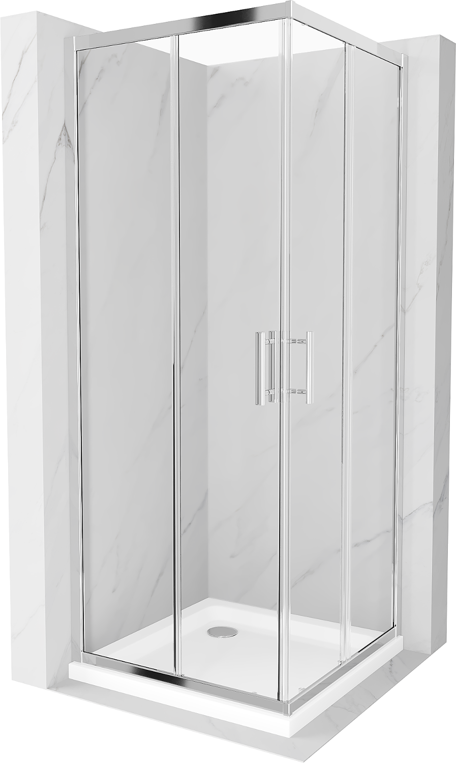 Mexen Rio, 80 x 80 cm-es négyzet alakú zuhanykabin, átlátszó, króm + Flat zuhanytálca, fehér - 860-080-080-01-00-4010