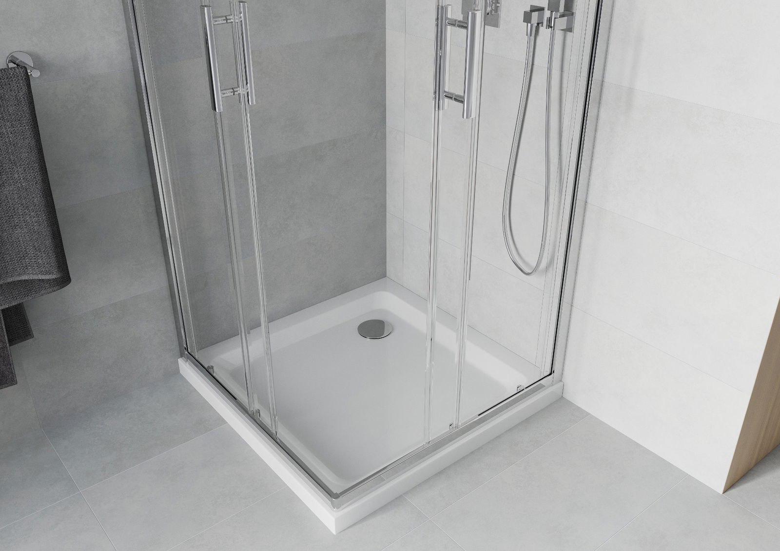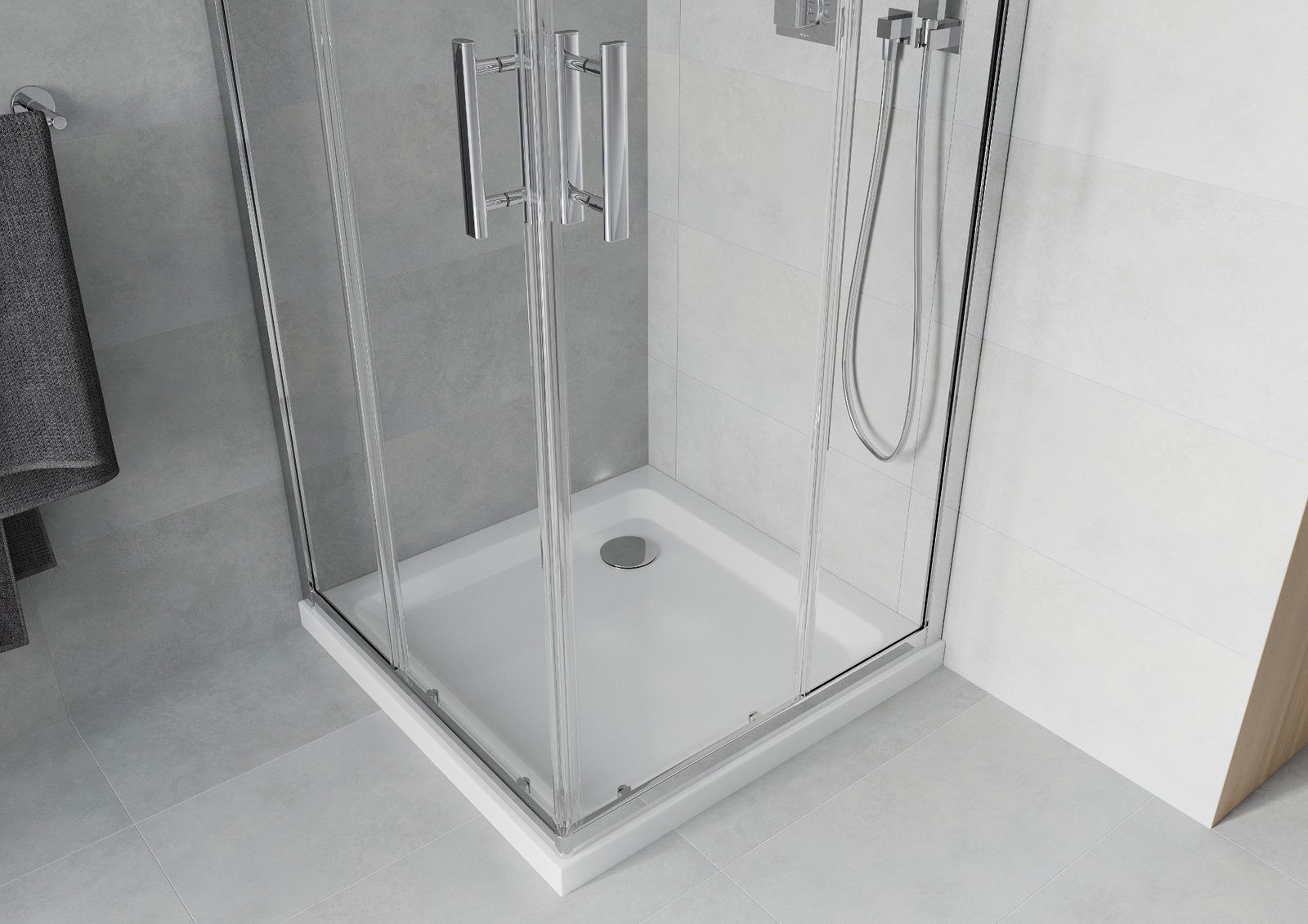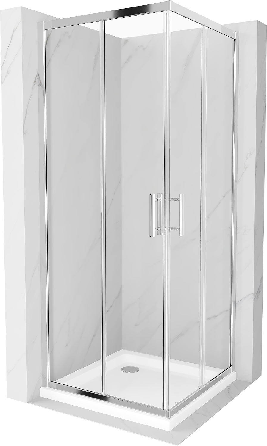Mexen Rio négyzet alakú zuhanykabin 90 x 90 cm, átlátszó, króm + Flat zuhanytálca, fehér - 860-090-090-01-00-4010