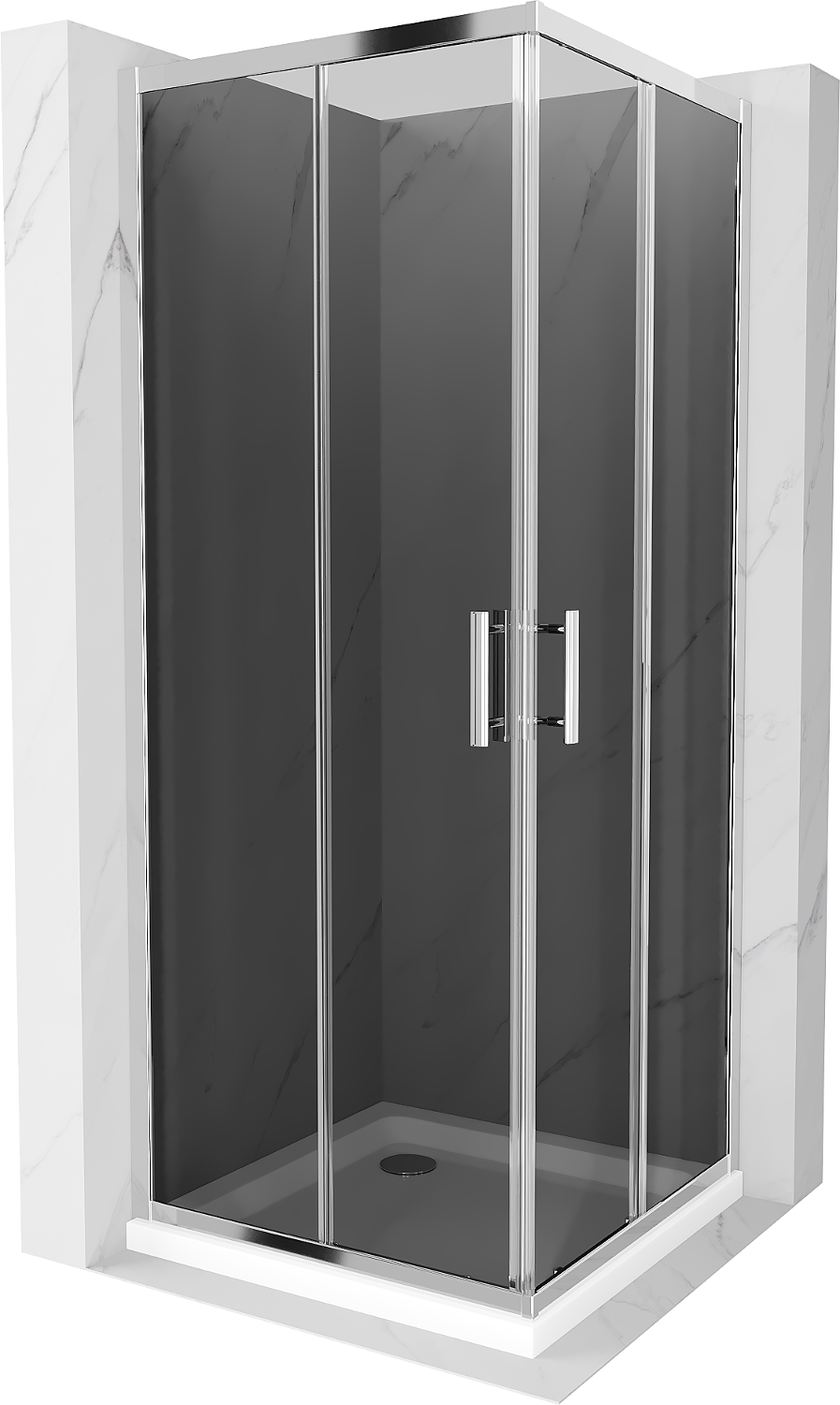 Mexen Rio négyzet alakú zuhanykabin 80 x 80 cm, grafit, króm + Flat zuhanytálca, fehér - 860-080-080-01-40-4010