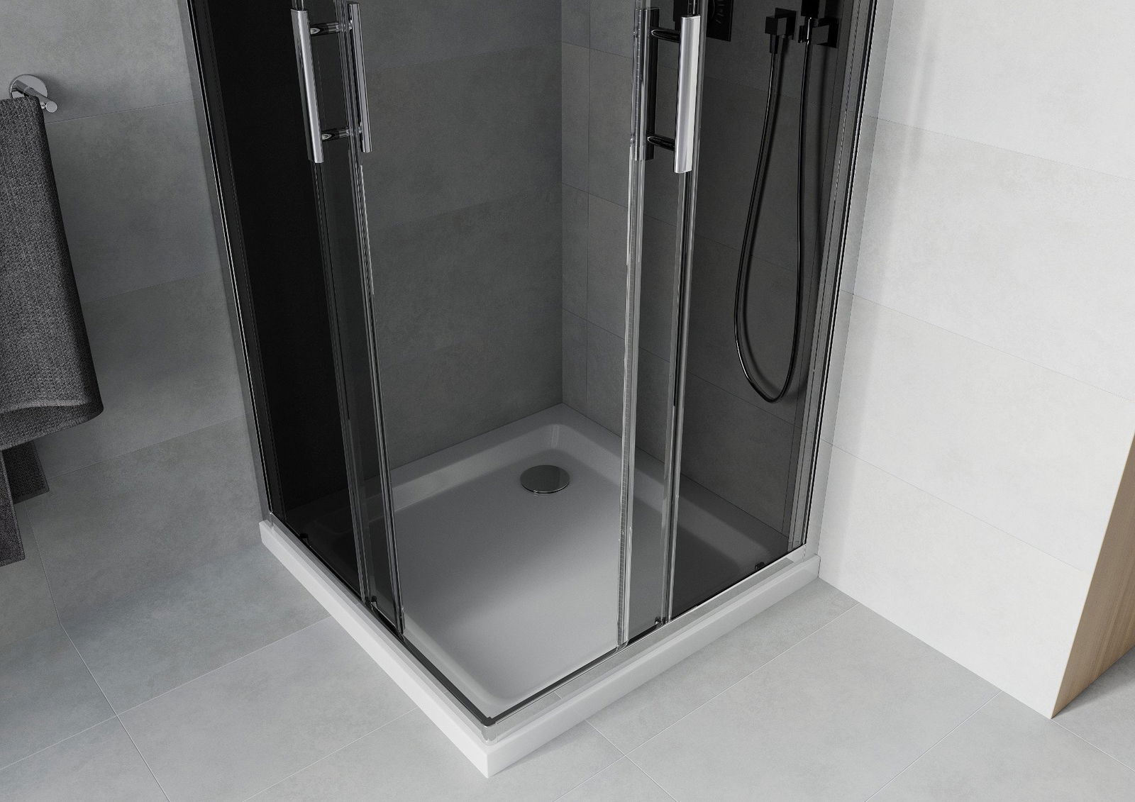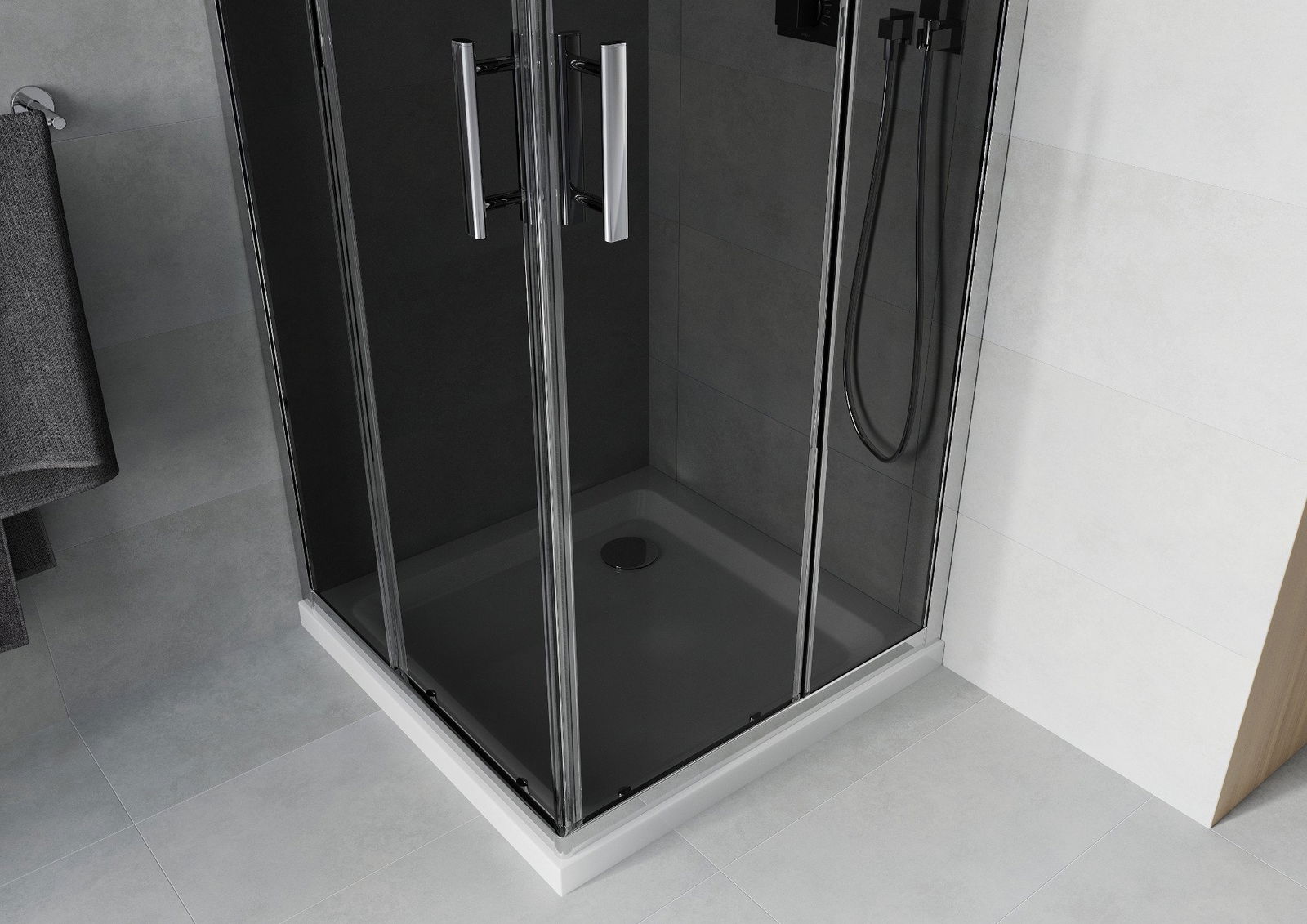 Mexen Rio négyzet alakú zuhanykabin 90 x 90 cm, grafit, króm + Flat zuhanytálca, fehér - 860-090-090-01-40-4010