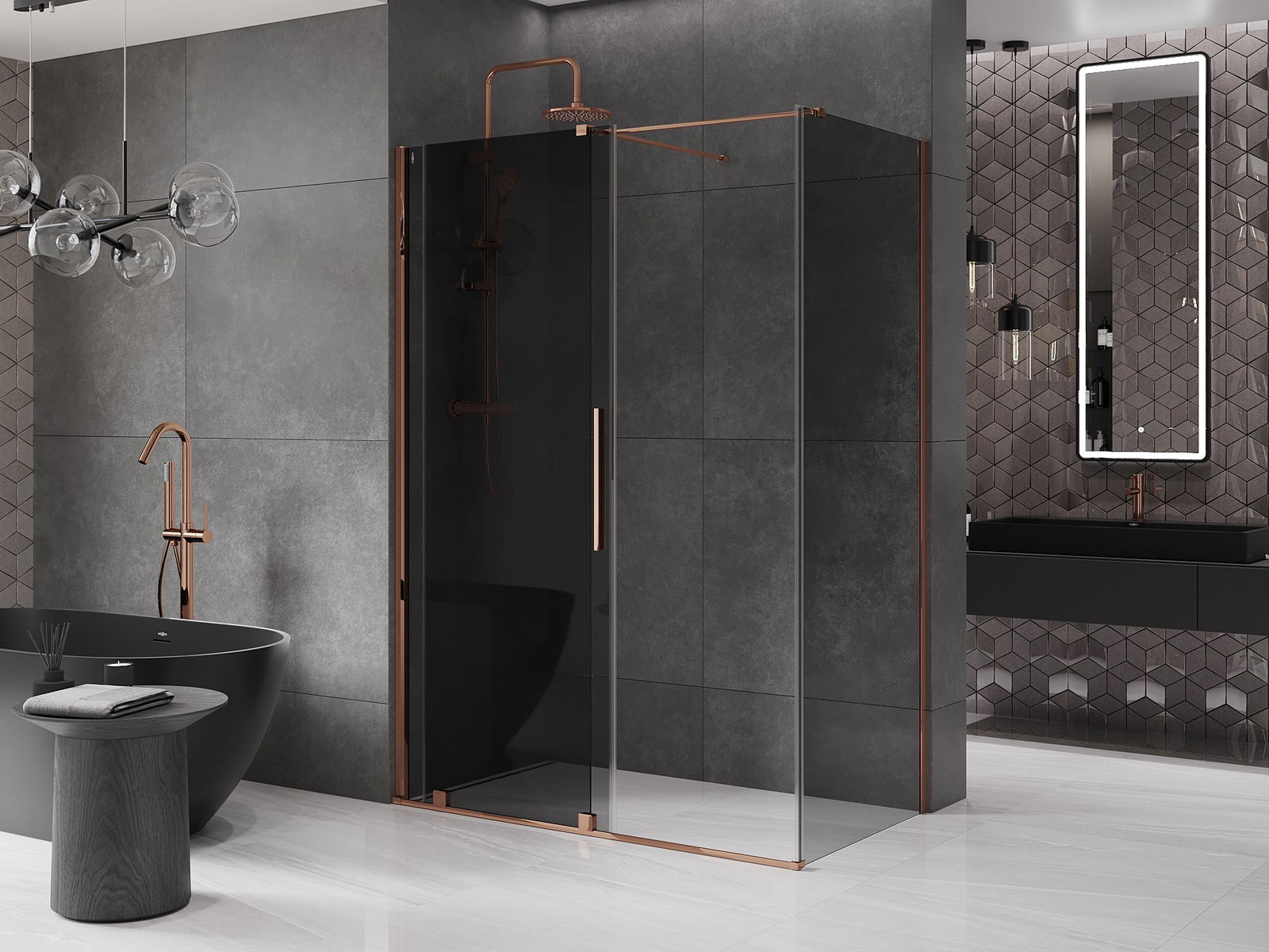 Mexen Velar toló zuhanykabin 150 x 70 cm, grafitszürke, rózsaarany - 871-150-070-41-60