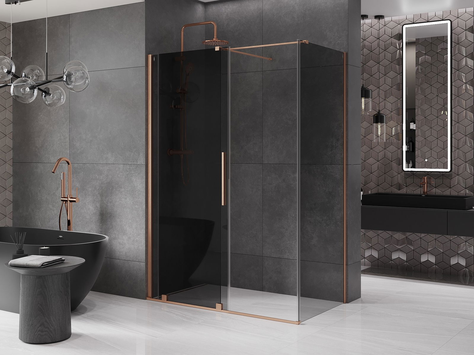 Mexen Velar tolóajtós zuhanykabin 160 x 80 cm, grafit, csiszolt réz - 871-160-080-41-65