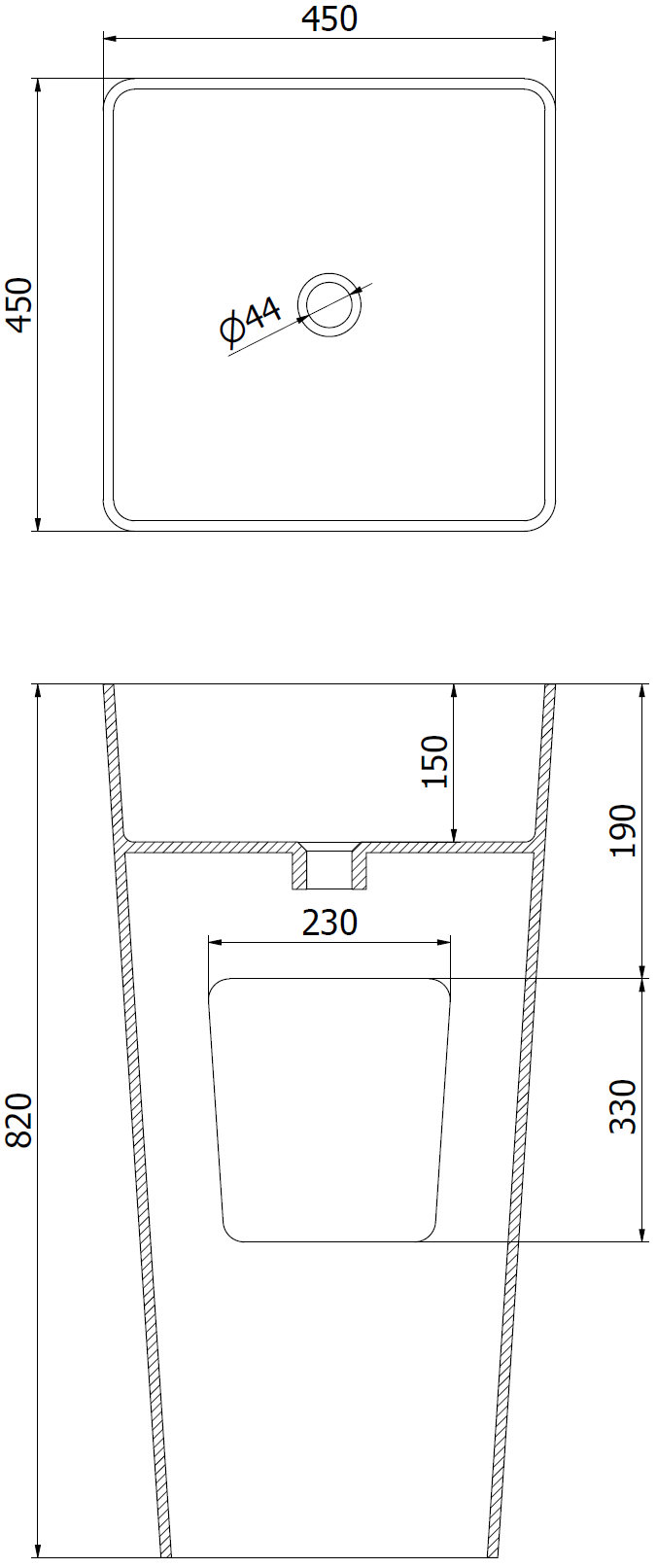 A termék konglomerátumból készült. Jellemzője a sima felület és a magas fokú ellenállás a mechanikai sérülésekkel és karcolásokkal szemben. Tartós megoldás, amely évekig megőrzi esztétikai megjelenését.