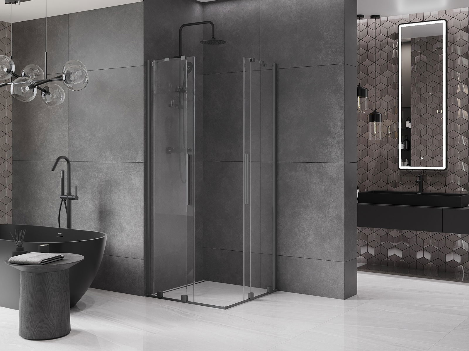 Mexen Velar Duo tolóajtós zuhanykabin 80 x 80 cm, átlátszó, gunmetal - 871-080-080-02-95