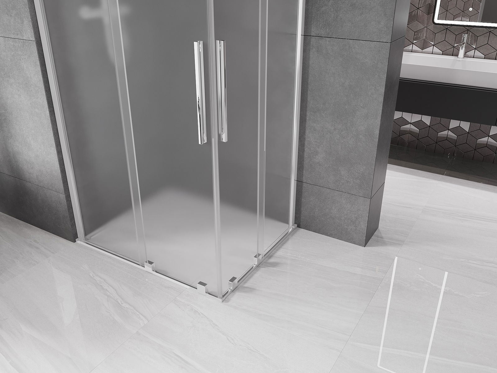 Mexen Velar Duo tolóajtós zuhanykabin 100 x 90 cm, matt, króm - 871-100-090-32-01